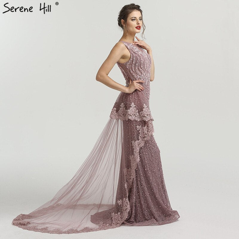 Nuevos vestidos de noche de sirena sin mangas, sexys, con perlas, de moda, con hombros descubiertos 2025 LA6527