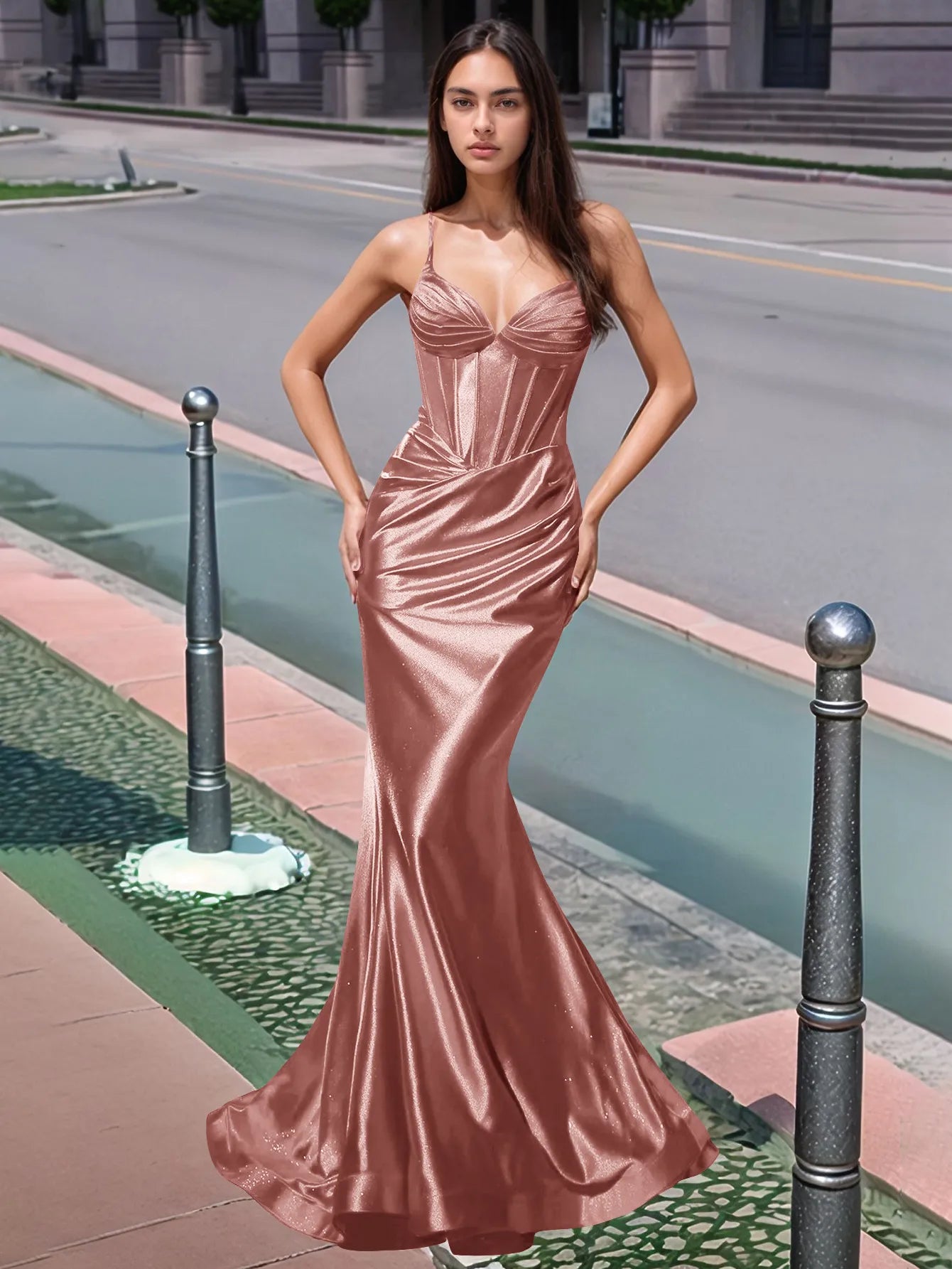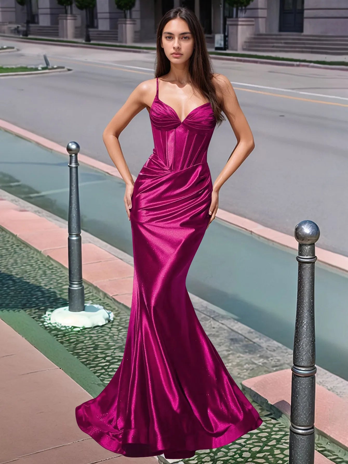 Vestido largo de sirena con escote en V plisado y boiced para baile de graduación