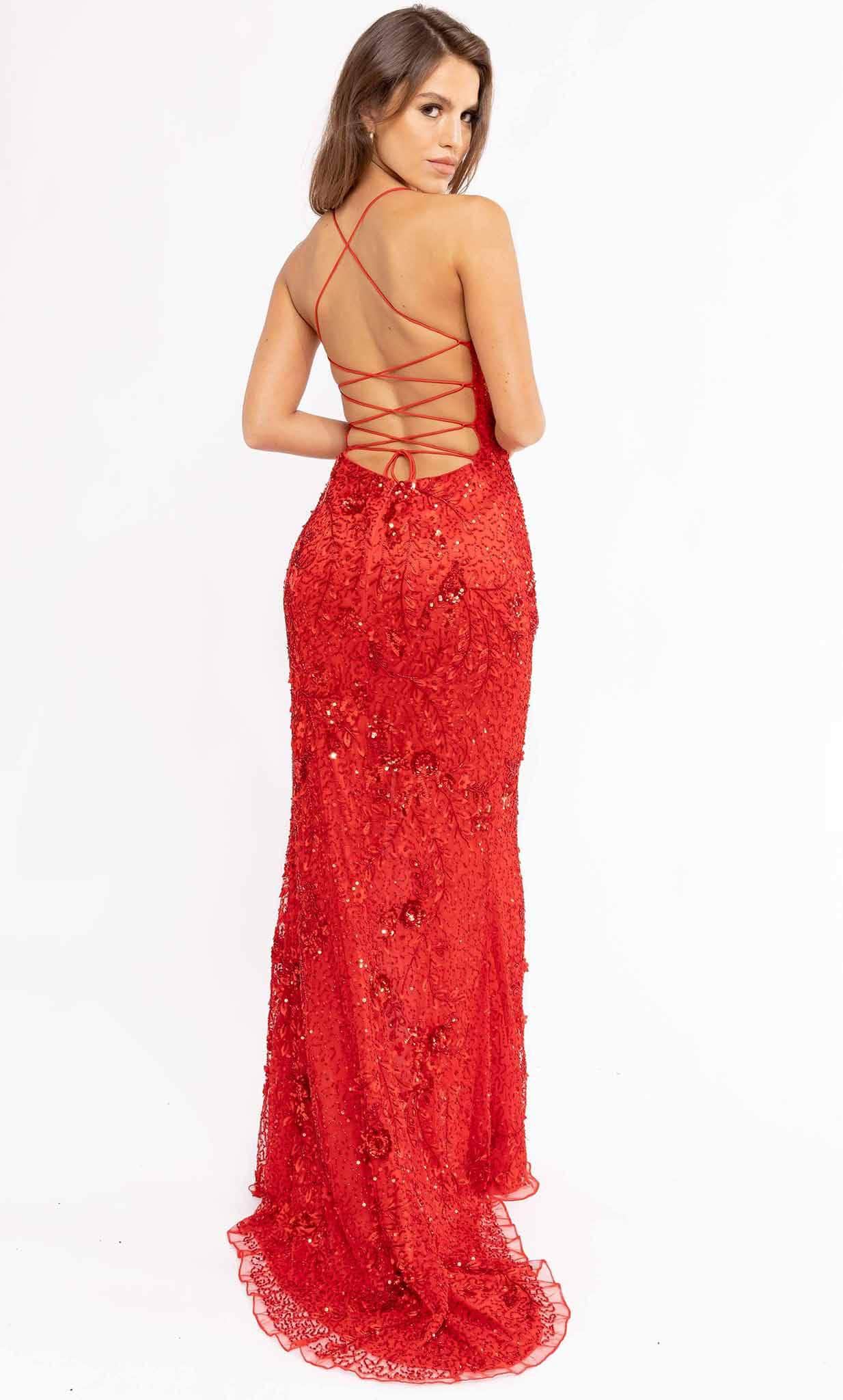 Conviértete en un sueño hecho realidad con este espectacular vestido largo de Primavera Couture 3931. Adornado con deslumbrantes bordados de cuentas, lentejuelas florales y apliques de hojas, este diseño cautivador luce un favorecedor escote redondo y tirantes finos. La atrevida espalda descubierta se ajusta con un lazo para un calce personalizado. Con una abertura hasta el muslo, la falda tubo cae con elegancia hasta el suelo y culmina en una cola deslumbrante. Esta obra maestra de Primavera Couture 3931 te permitirá celebrar tu divina belleza femenina. Las modelos lucen los colores Negro, Azul Brillante, Coral, Marfil, Rojo y Azul Real.