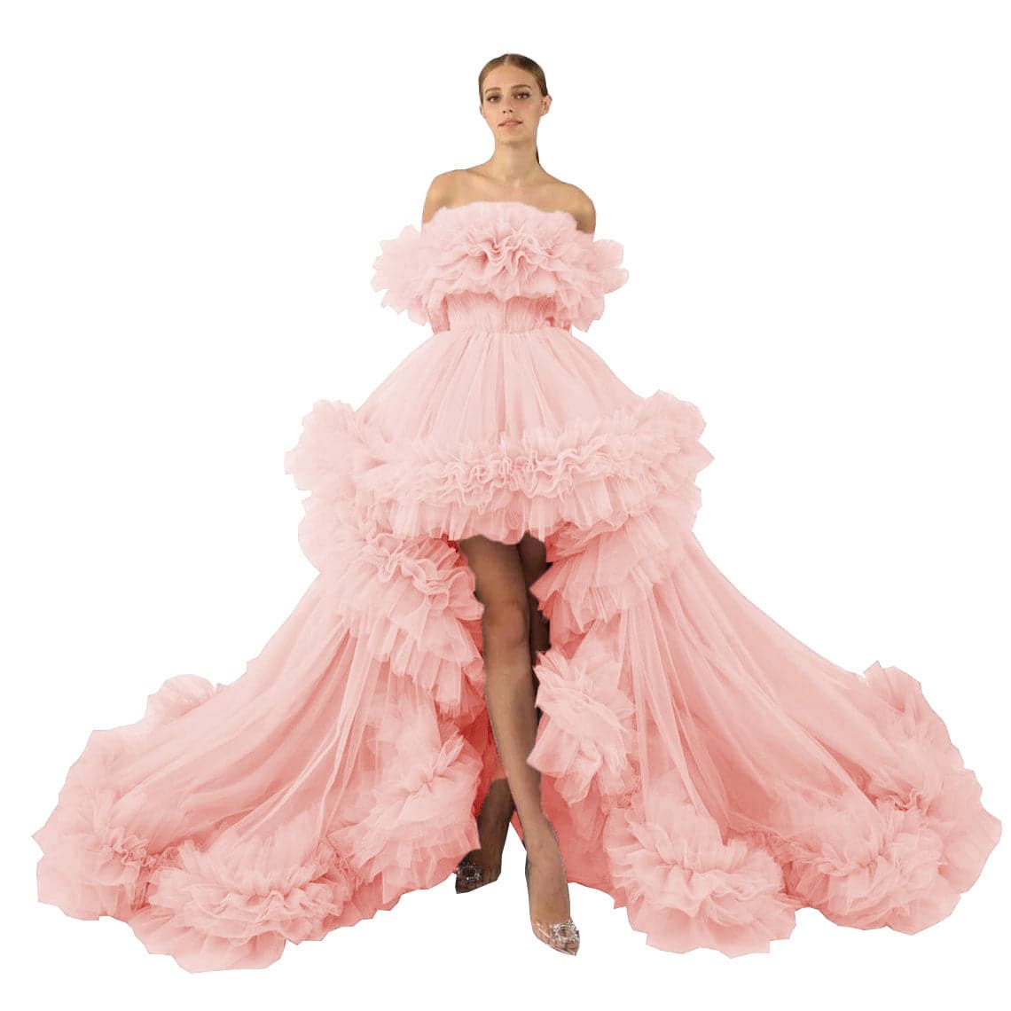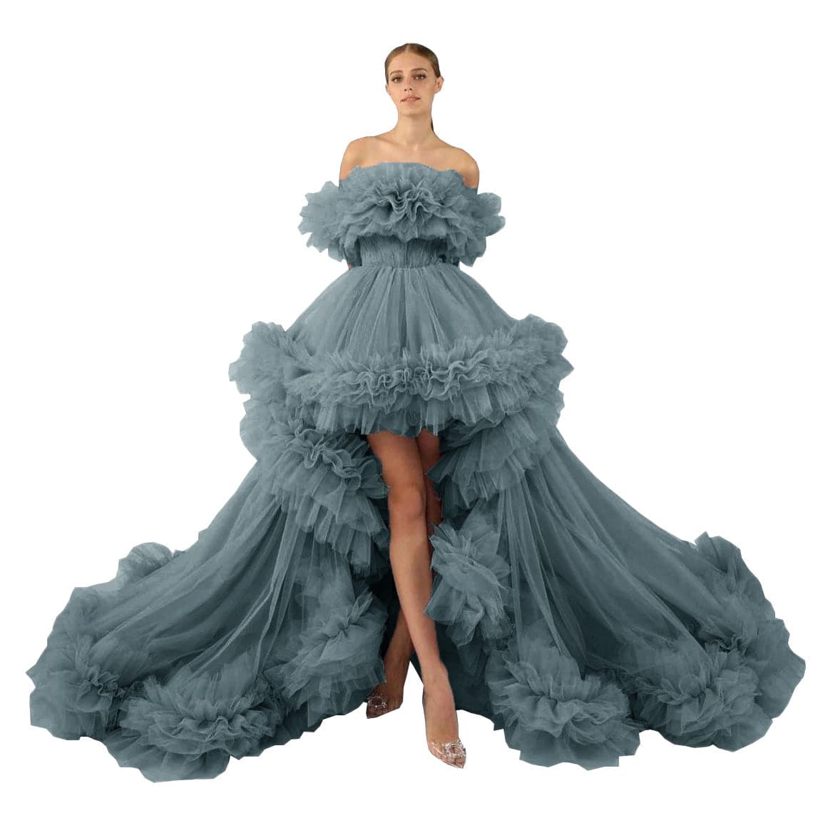 Vestido de maternidad de tul con hombros descubiertos para sesión de fotos. Bata de embarazo de tul abullonada para mujer. Vestidos de maternidad para fotografía. Bata sexy y lujosa con perspectiva para sesión de fotos. Vestido de fiesta con hombros descubiertos para baby shower. Bata de tul para baby shower. Bata asimétrica. Espalda ajustable con cordones. Sujetador integrado.
