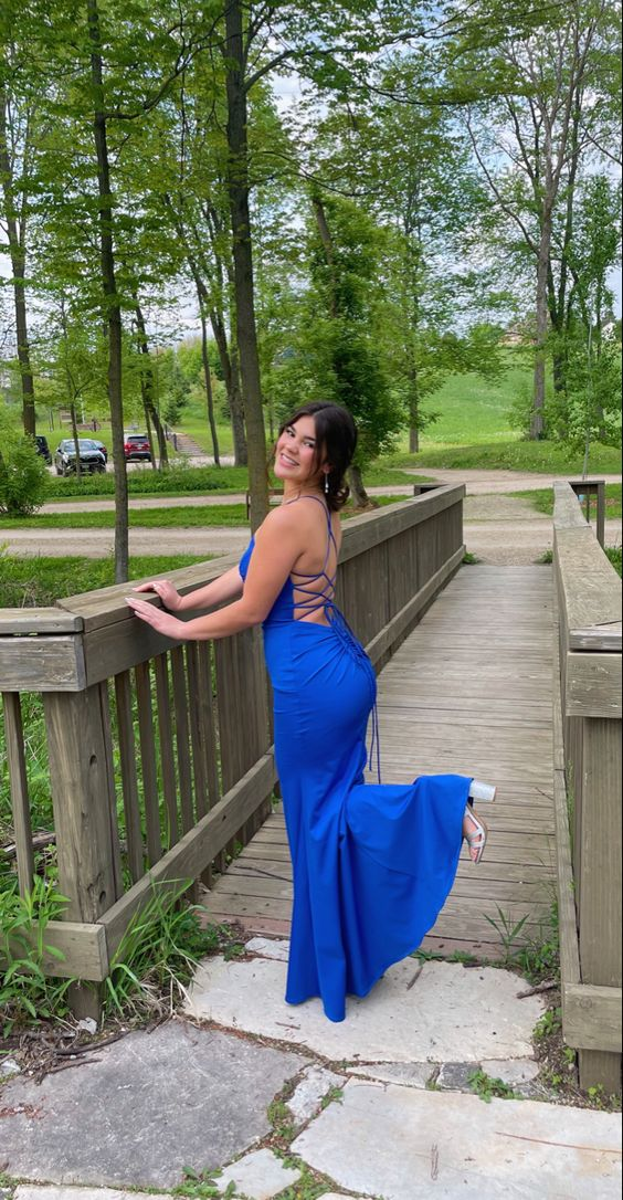 Vestido largo de sirena azul real para baile de graduación, elegante vestido de noche Y7228