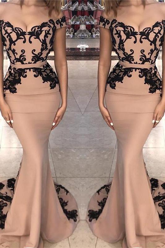 Espacios: Jardín / Exterior. Salón Detalles de la espalda: Cremallera Estación: Primavera. Verano. Otoño. Invierno Escote: Hombros descubiertos Material: Satén elástico Silueta: Sirena Tipo de cuerpo: Señorita Tren: Tren de barrido/cepillado Largo de manga: Manga corta Cintura: Natural Largo del dobladillo: Hasta el suelo Adorno: Encaje. Apliques