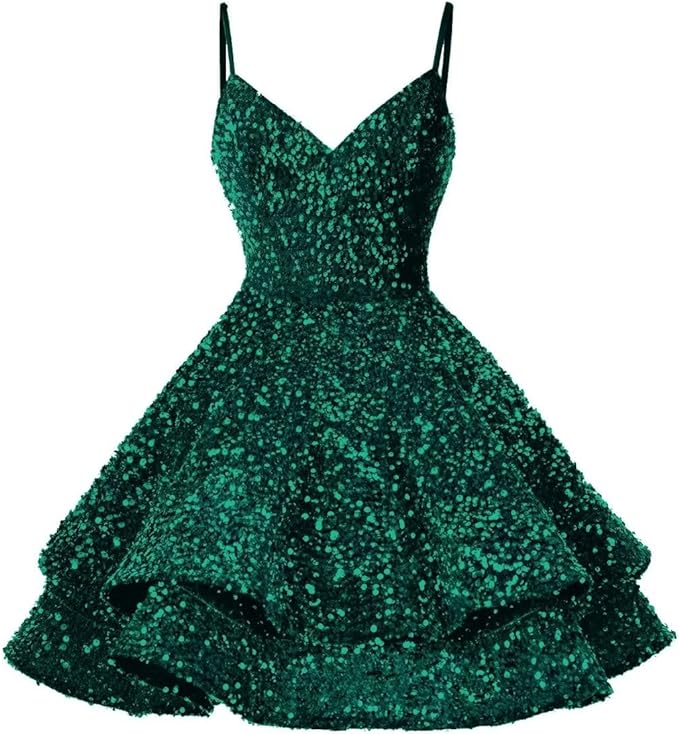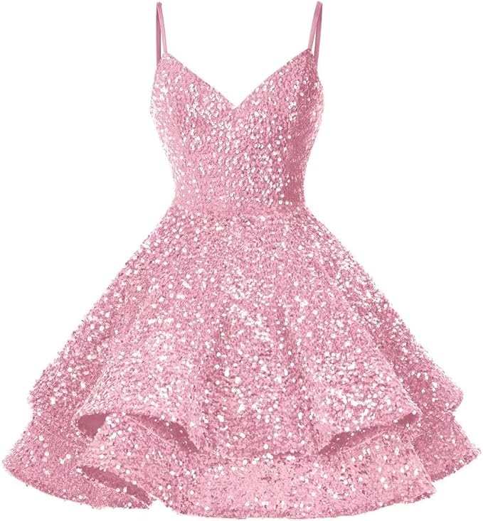 ¡Prepárate para deslumbrar con nuestros vestidos de lentejuelas para baile de graduación! Este vestido corto para adolescentes y mujeres luce un diseño brillante de lentejuelas y un dobladillo doble con volumen que te hará destacar en cualquier evento. Con tirantes finos, escote en V y un sexy diseño sin espalda, este vestido es perfecto para fiestas, graduaciones o incluso sesiones de fotos. El sujetador incorporado y el cierre de cordones en la espalda garantizan un ajuste seguro y cómodo. Sé la estrella de la noche con este precioso vestido de fiesta hasta la rodilla.