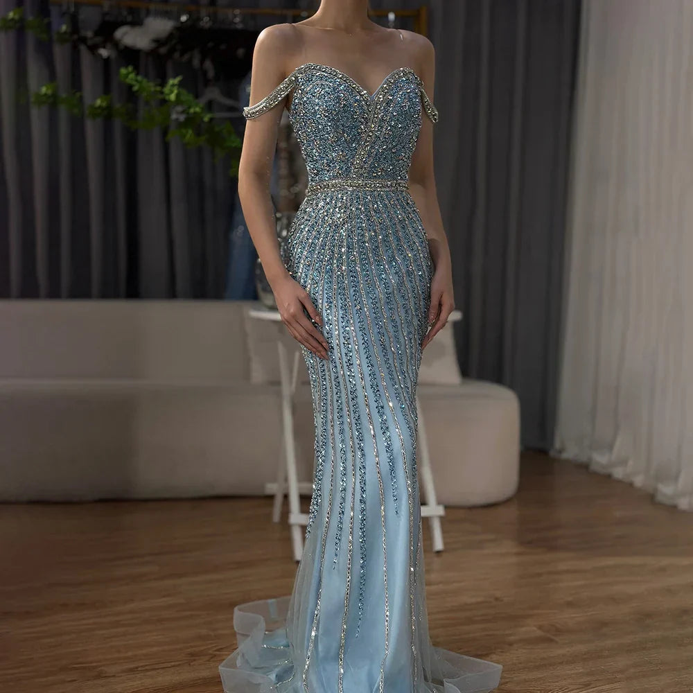 Vestido de noche de sirena azul con cuentas, de lujo, estilo saudí, para ocasiones formales (LA72715A)