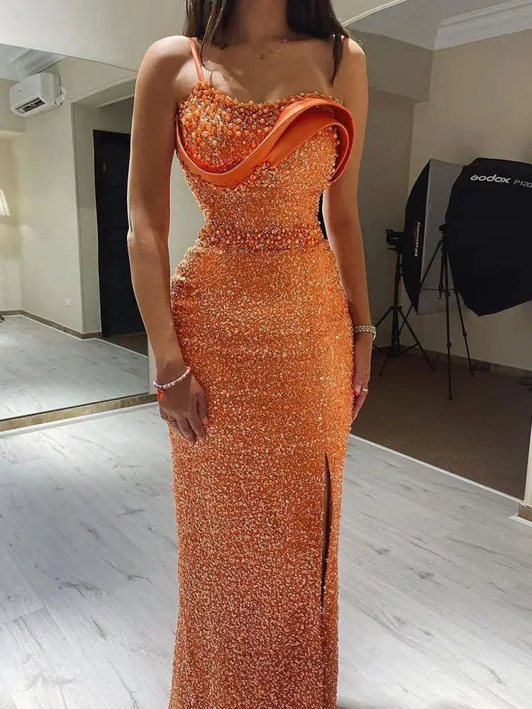 Vestido de noche de lujo estilo sirena, color naranja árabe, con un solo hombro, de la colección Elegance de Dubái 2025, para bodas y fiestas de mujeres (LA72358)