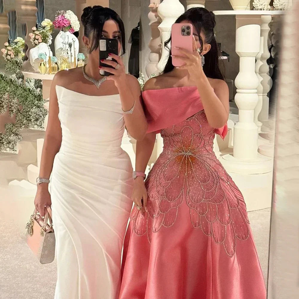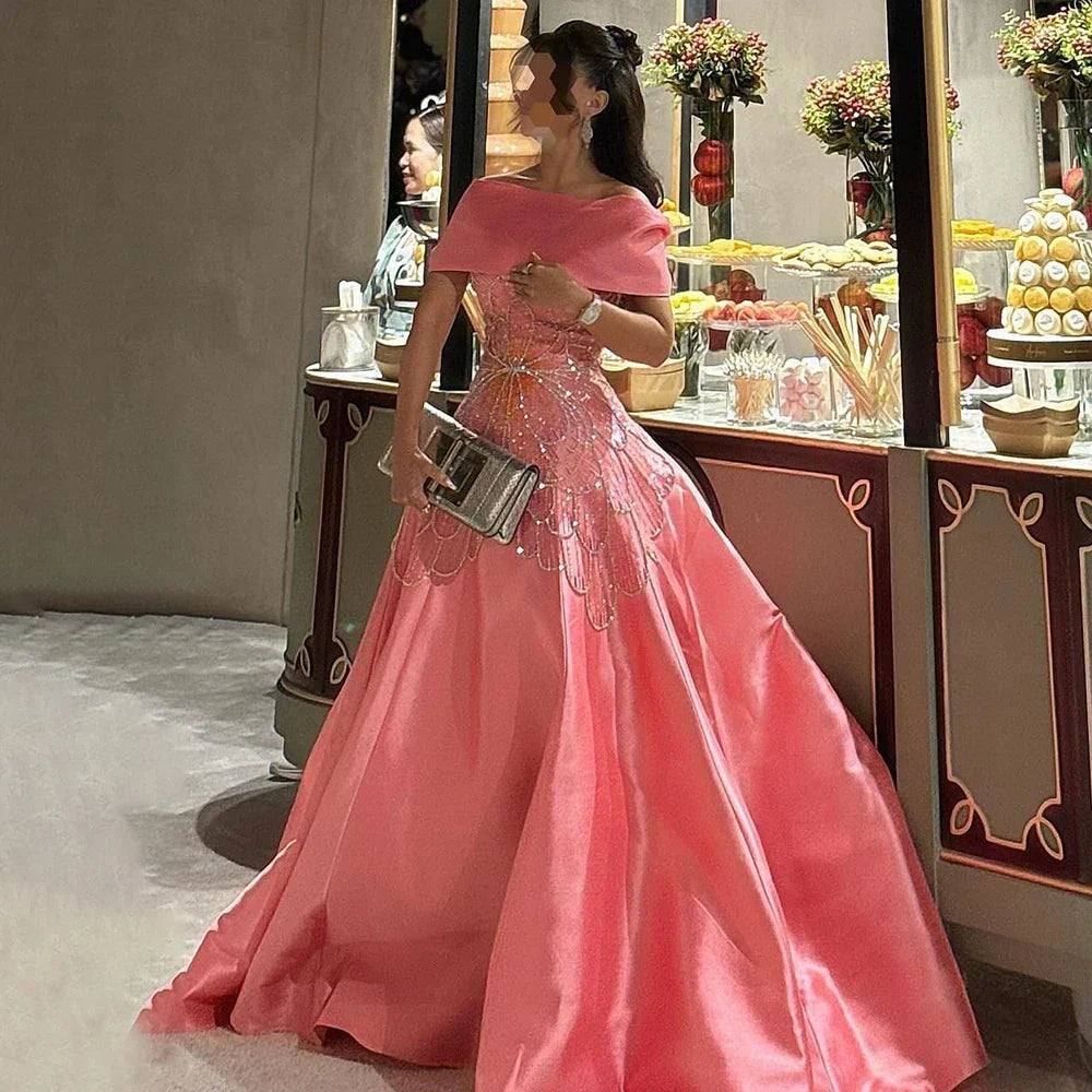 Vestido de noche saudí de satén rosa árabe corte A con cuentas para ocasiones formales LA72195A