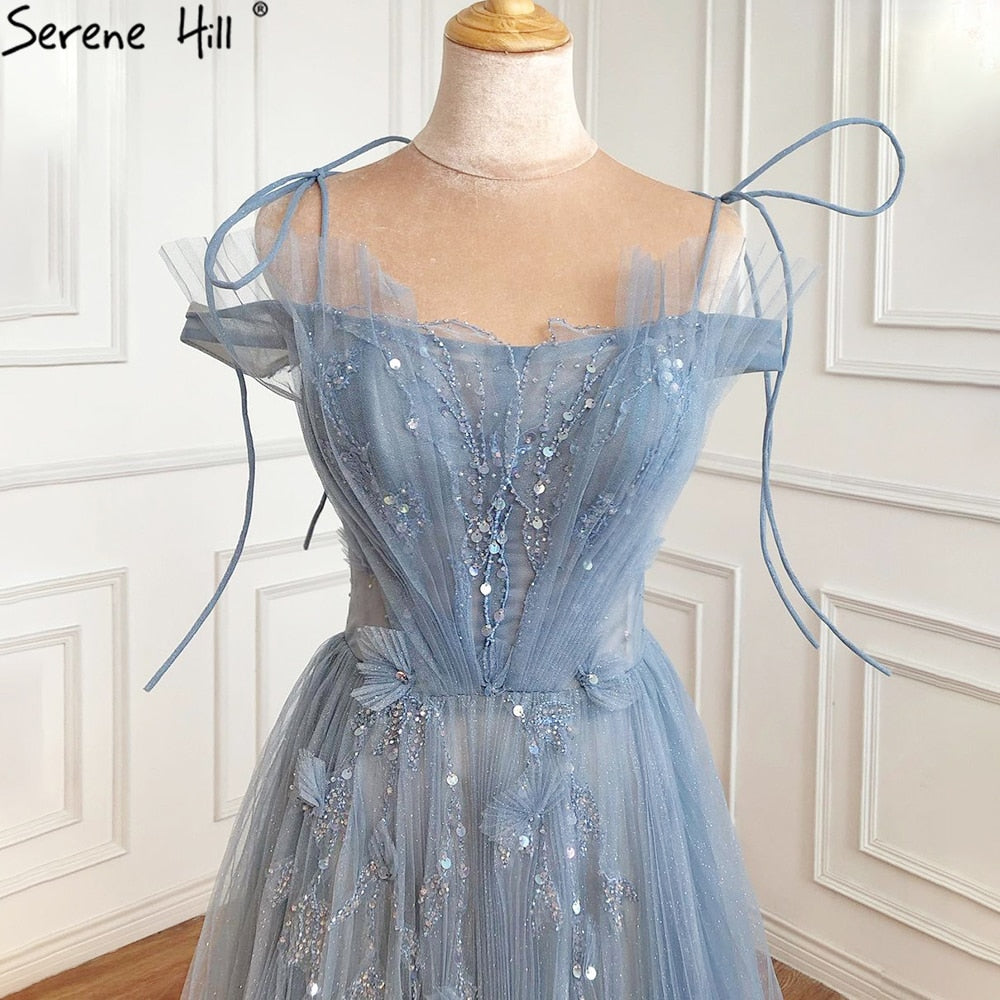 Vestidos de noche de tul azul corte A, estilo sexy, con flores y pedrería, colección 2025, para mujer, ideales para fiestas (LA71149)