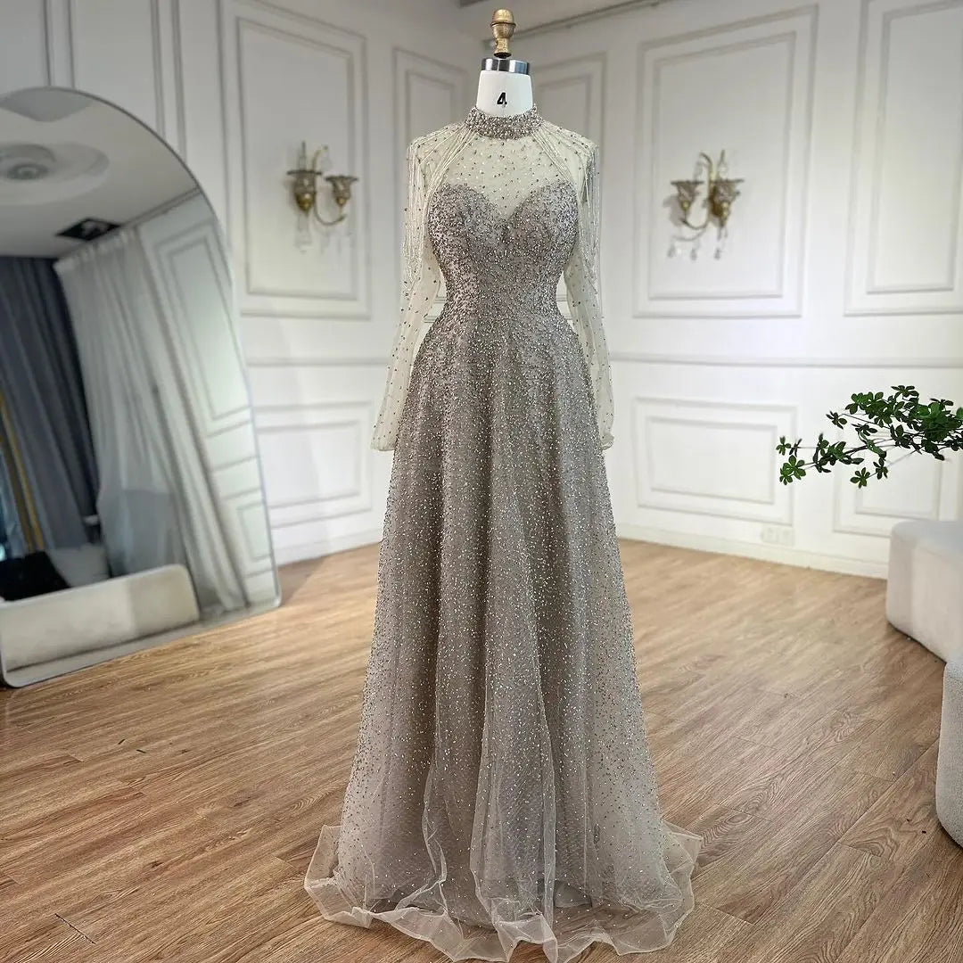 Vestidos de noche árabes de sirena color nude con cuentas y borlas, vestidos de lujo para bodas y fiestas de mujeres 2025 LA72570