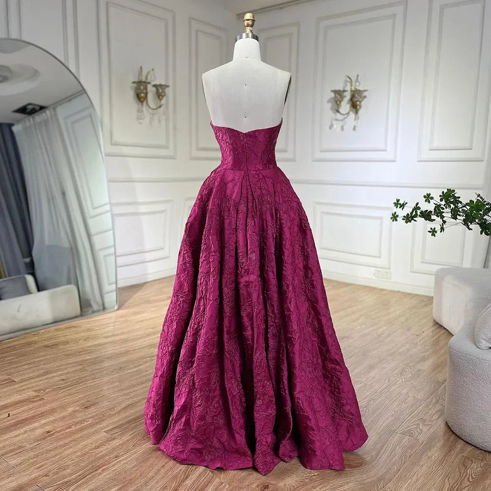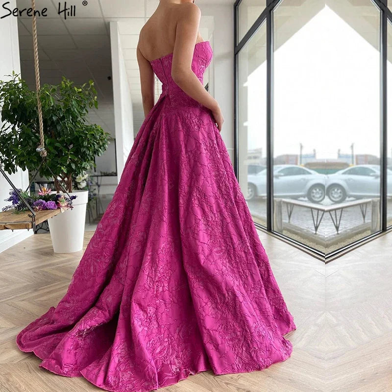 Vestidos de noche elegantes color fucsia árabe 2025. Vestido largo formal sin mangas de corte línea A de lujo de Dubái, diseño LA70699