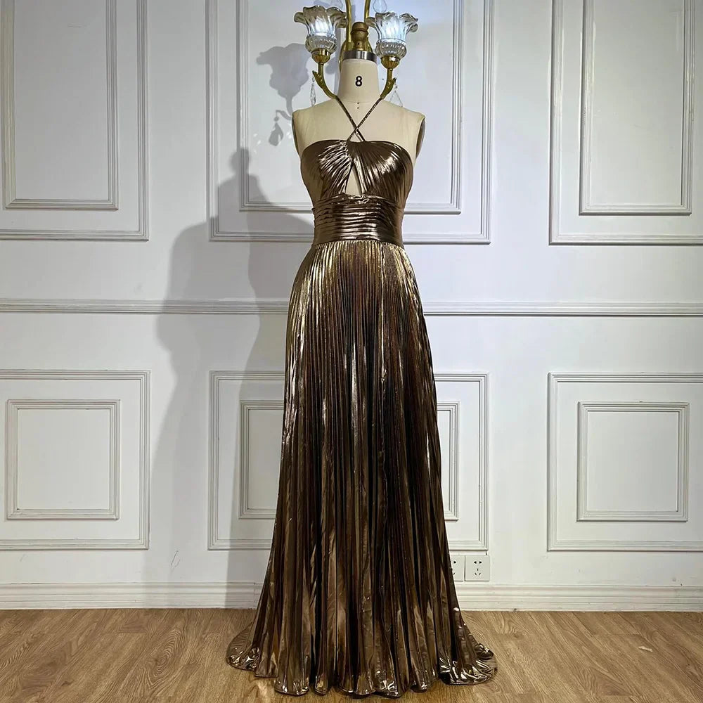 Vestido de noche de sirena con tirantes halter, espalda con cordones y cuentas, color azul marino árabe | Boda 2025 LA72625