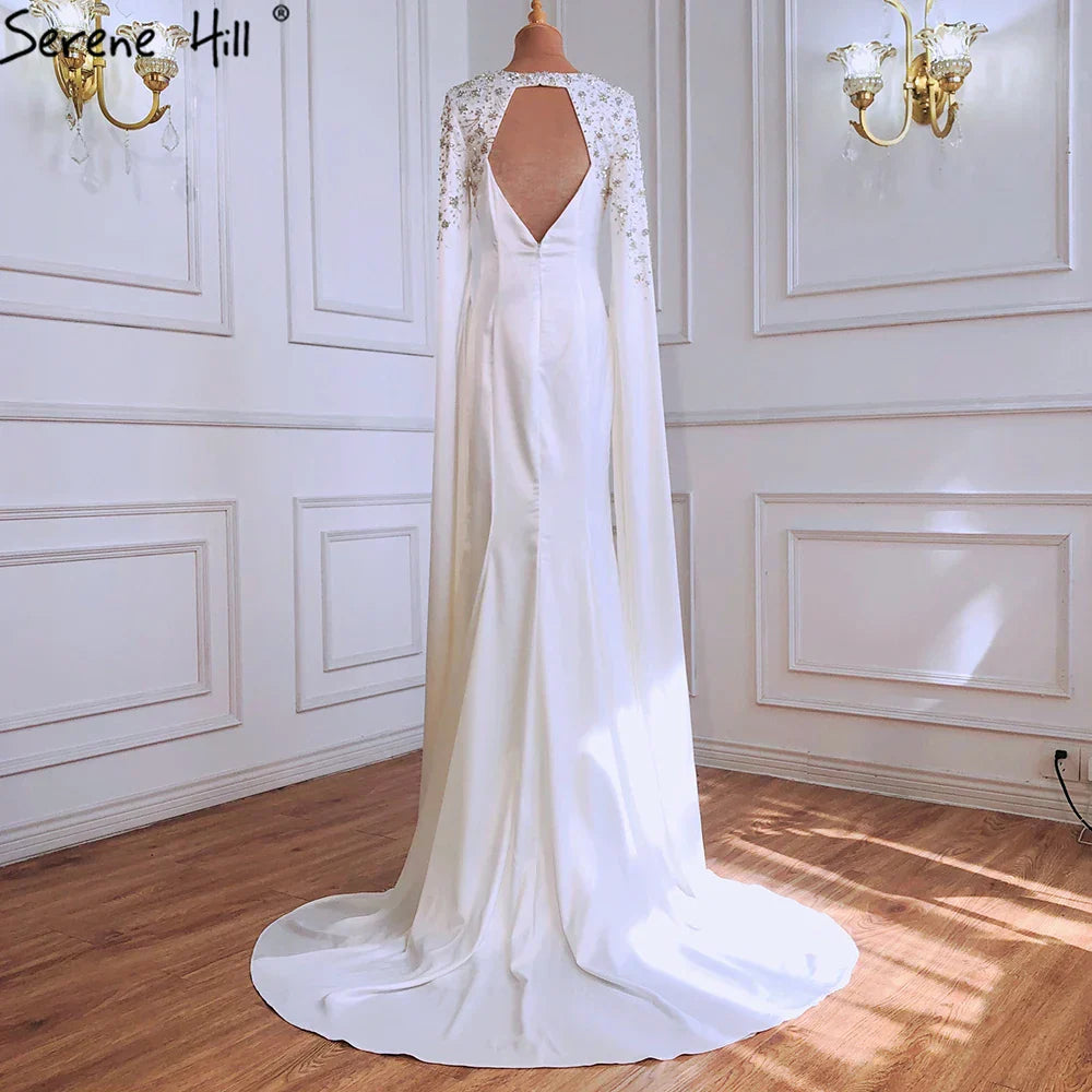 Vestido de noche blanco de sirena con mangas estilo capa, vestidos de noche 2025 para mujer, fiesta LA70934