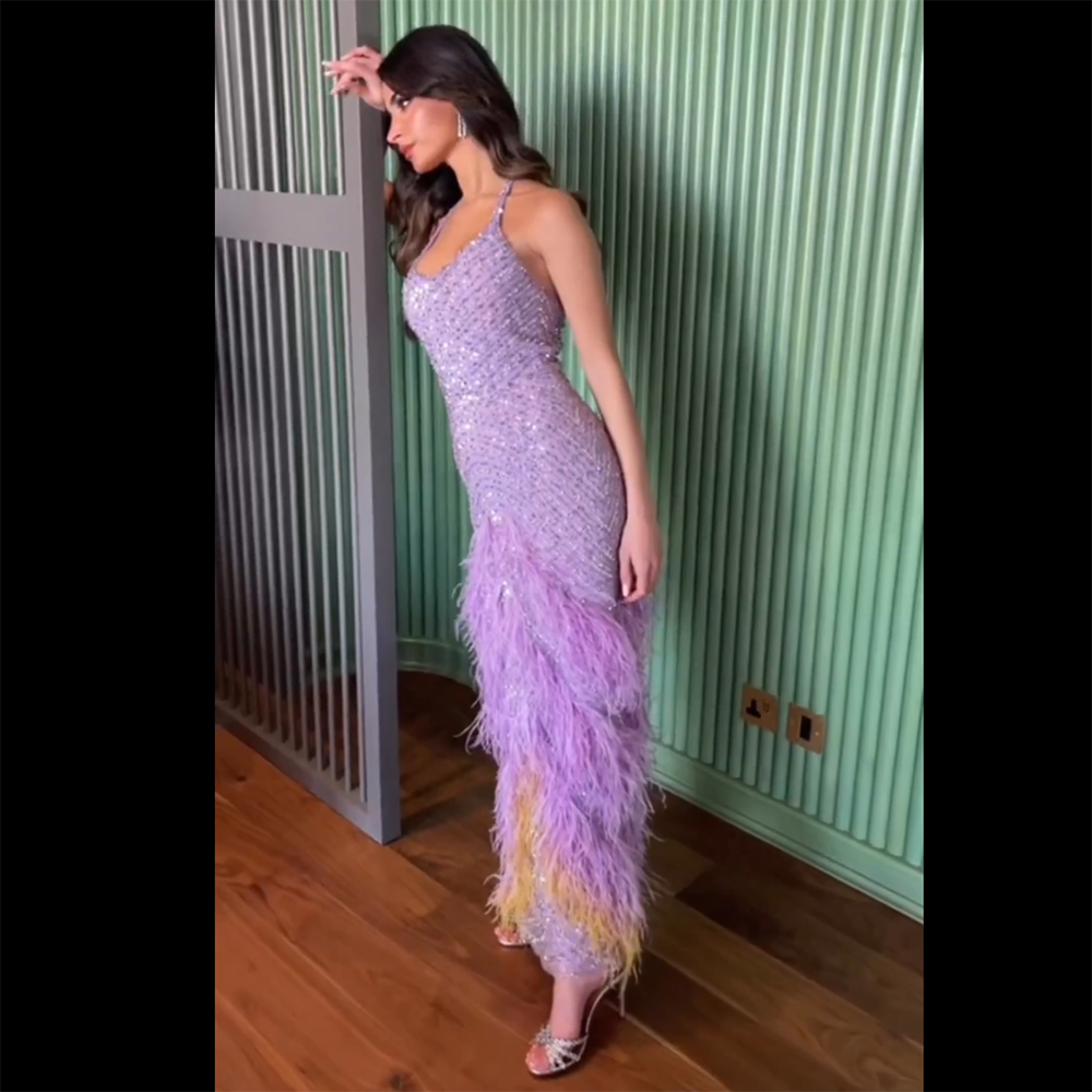 Añade un toque de lujo a tus eventos nocturnos con nuestro vestido de noche lila SERENE HILL. Su elegante diseño halter y silueta sirena se complementan con delicadas plumas, haciéndolo perfecto para bodas, graduaciones y otras ocasiones especiales. Deslumbra como una sirena y luce espectacular con este vestido único.