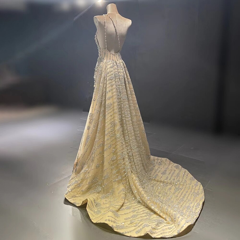 Elegante vestido de noche de sirena color piel, 2025, con cuentas, de lujo, de un solo hombro, para mujer, fiesta, LA71538