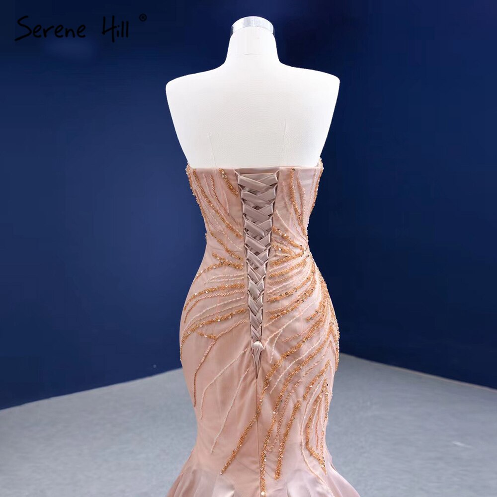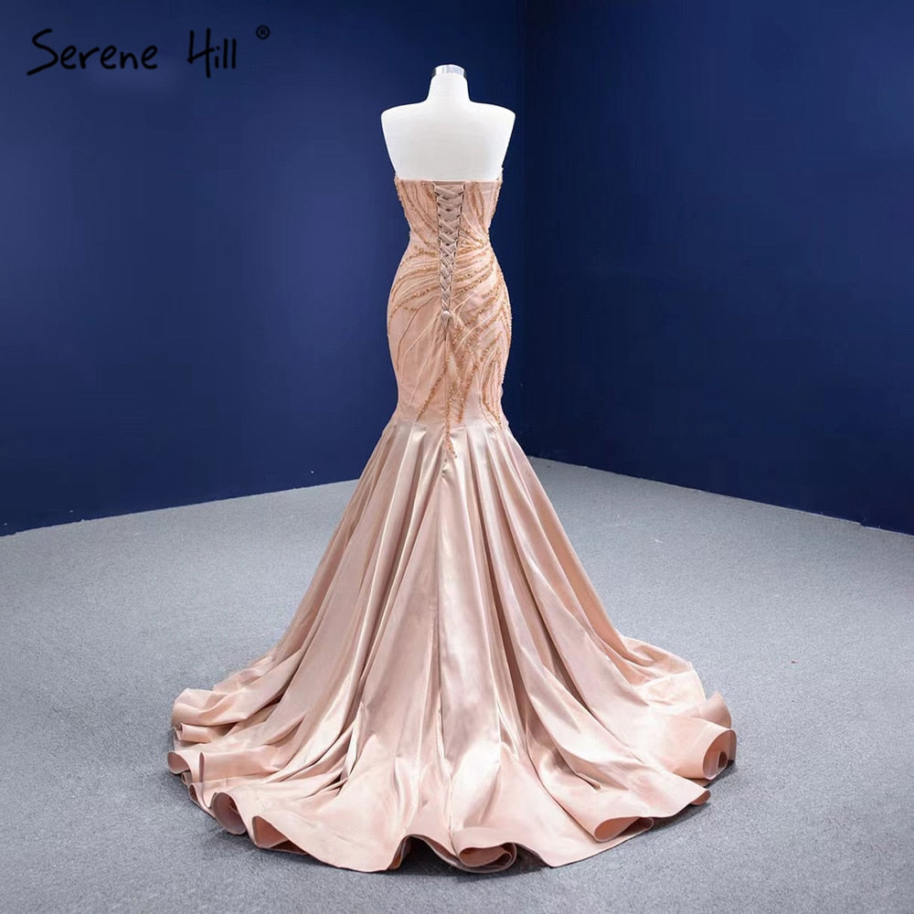 Vestidos de noche sexys de sirena color piel, elegantes, de alta gama, con cuentas, para mujer, para fiesta, HM67320