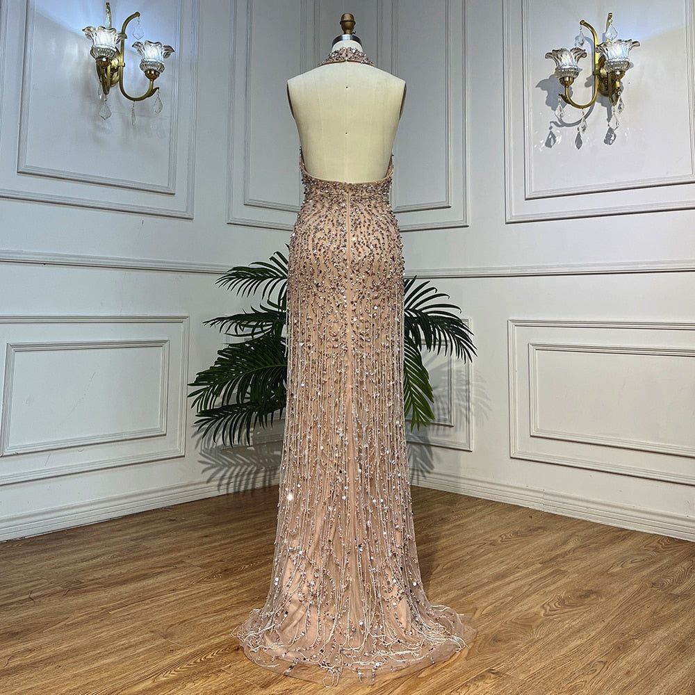 Vestido de noche árabe con escote halter, corte sirena, sexy, con abertura alta y cuentas, para mujer, para boda, fiesta, 2025, LA72025