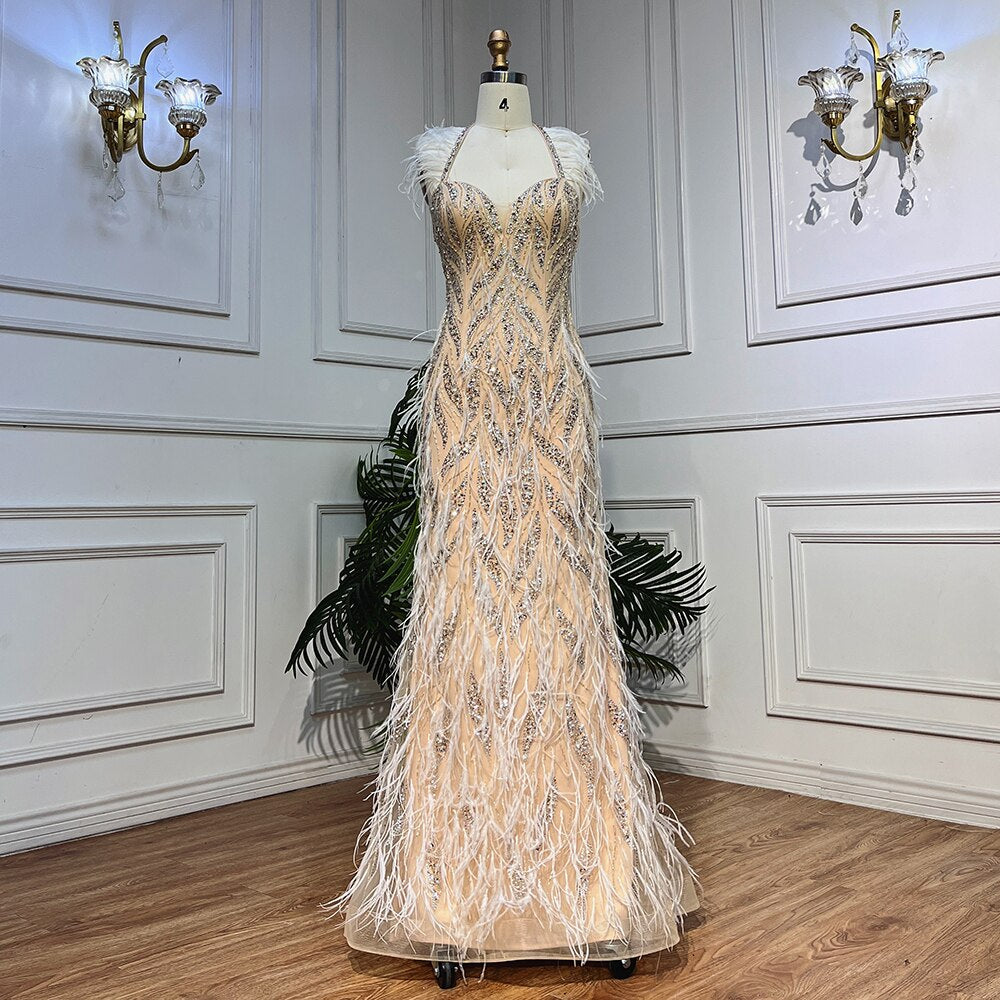 Vestidos de noche de sirena con tirantes finos, de lujo, con plumas y cuentas, estilo Dubái, para mujer, para boda, 2025, LA72010