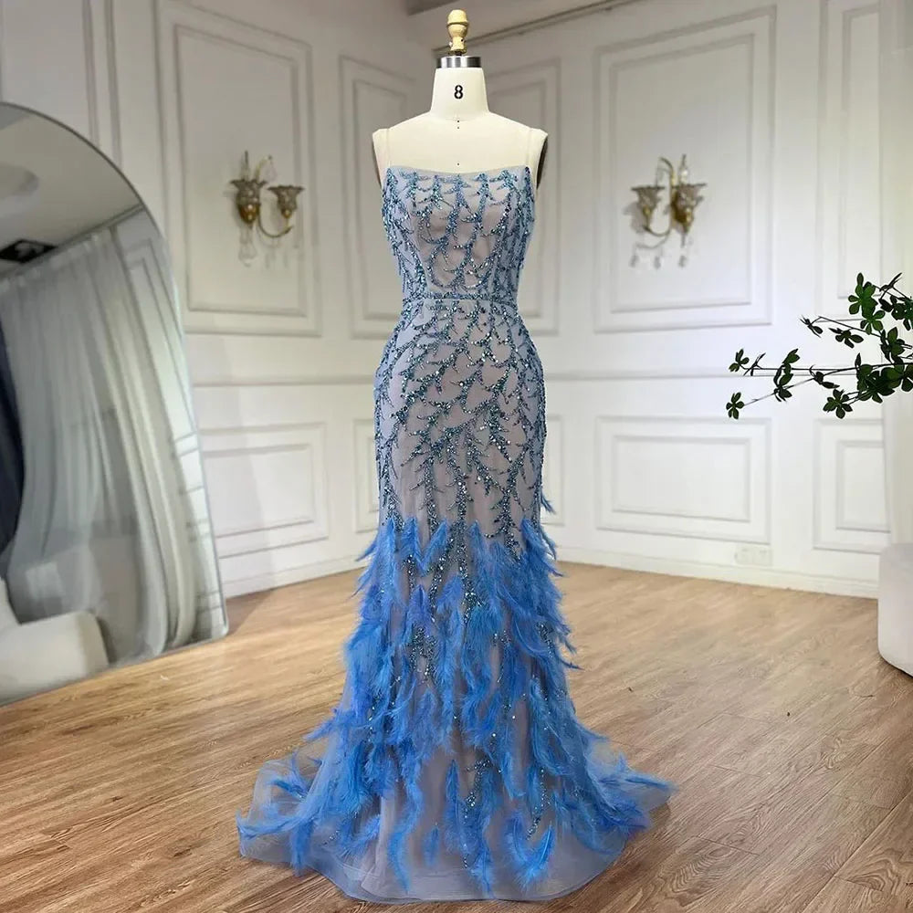 Vestido de noche de sirena con tirantes finos en color naranja, de lujo, con plumas y cuentas, para mujer, ideal para bodas, 2025, LA72272