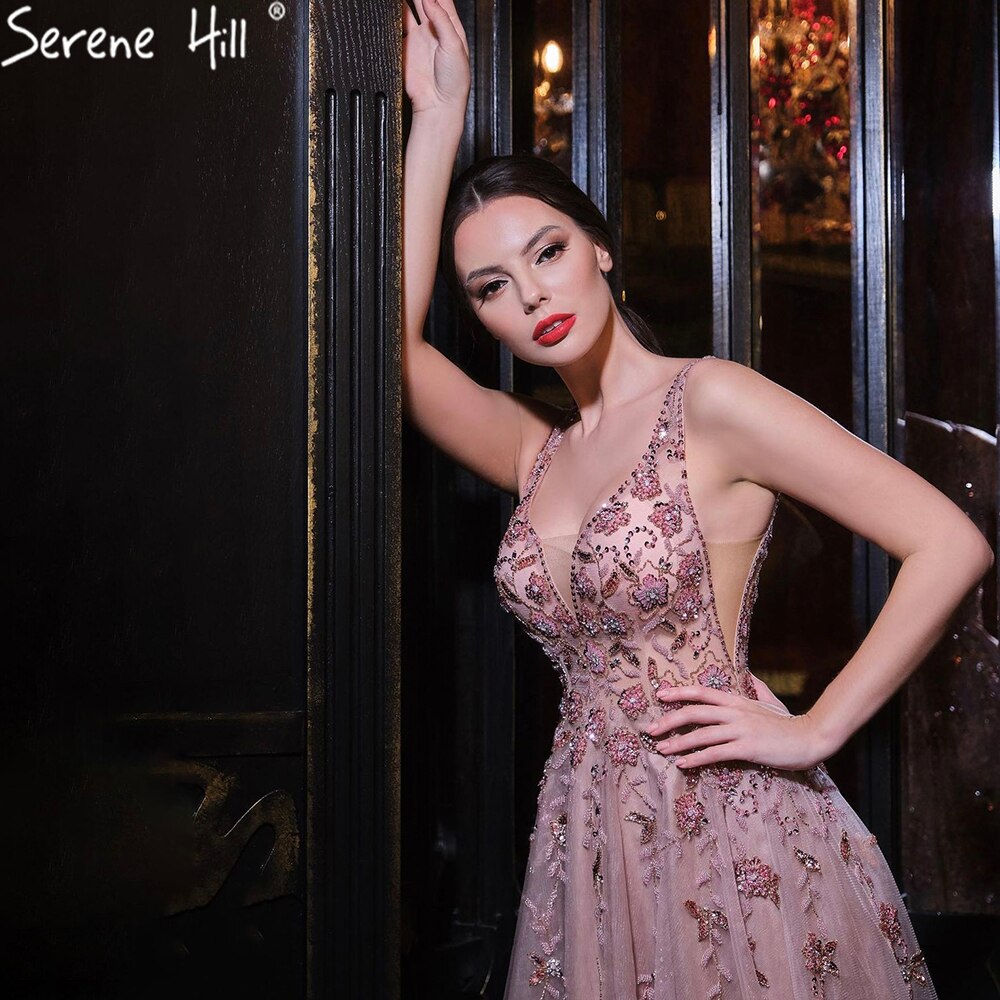 Vestidos de noche sexys de corte A en rosa, con tirantes finos y cuentas, para mujer, para fiesta, LA71268