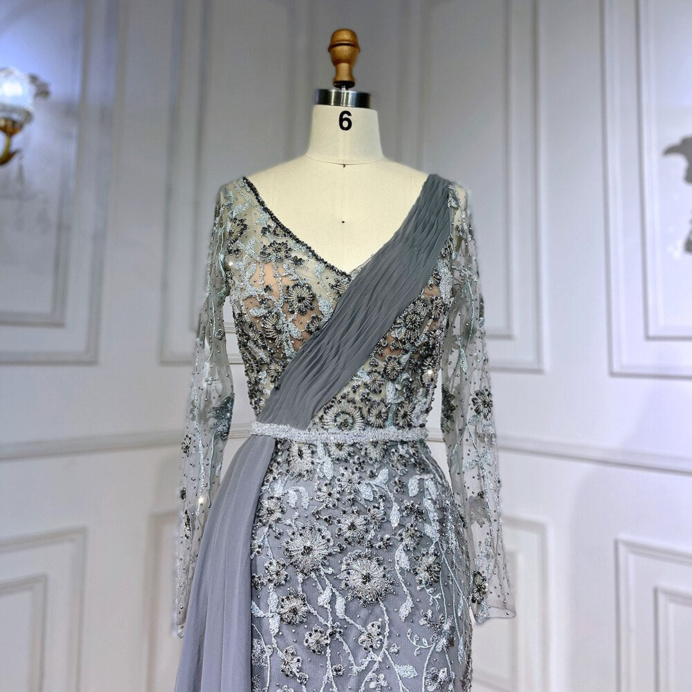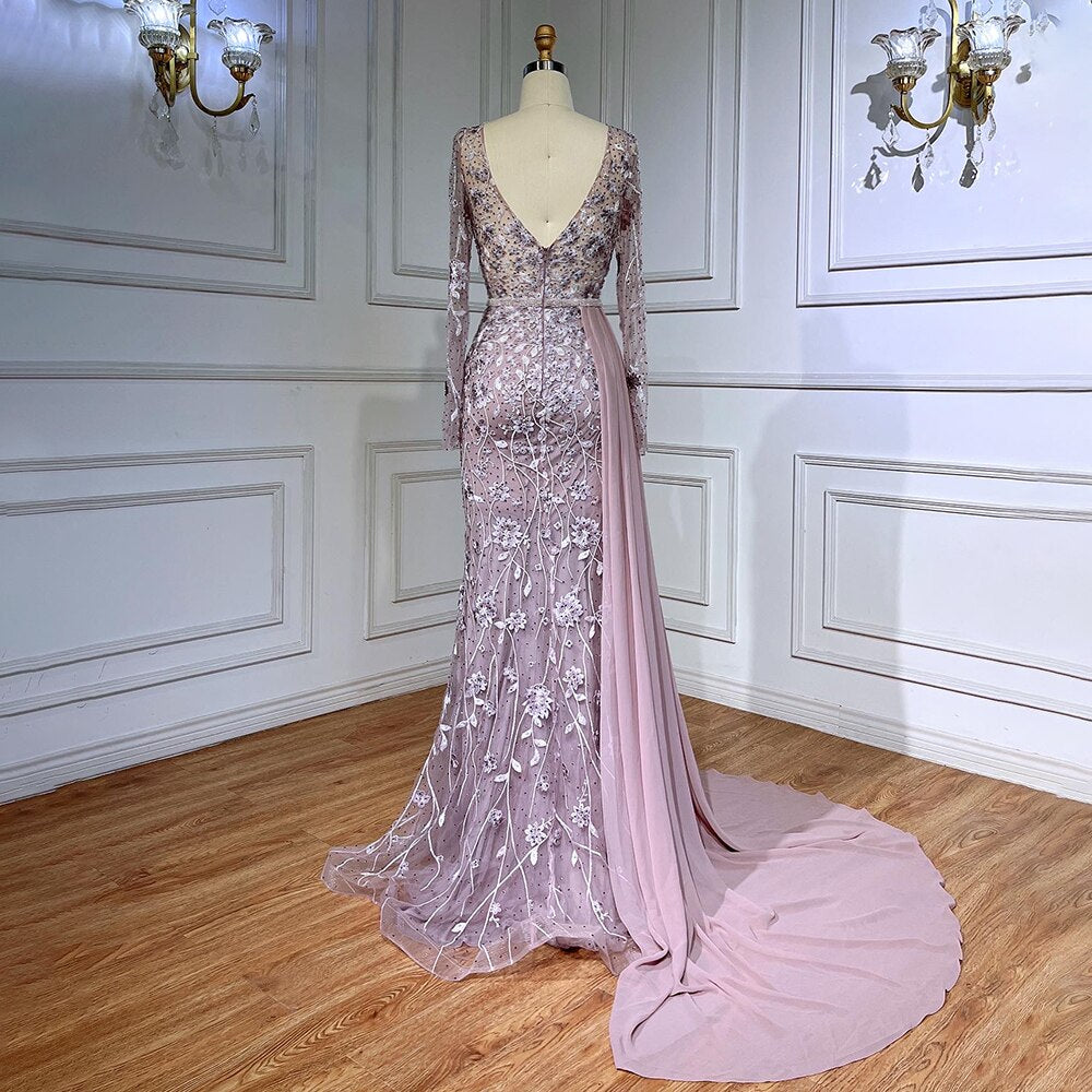 Elegante vestido de noche rosa de sirena sexy con sobrefalda y cuentas, de lujo, para mujer, estilo árabe, para fiesta 2025, LA71835