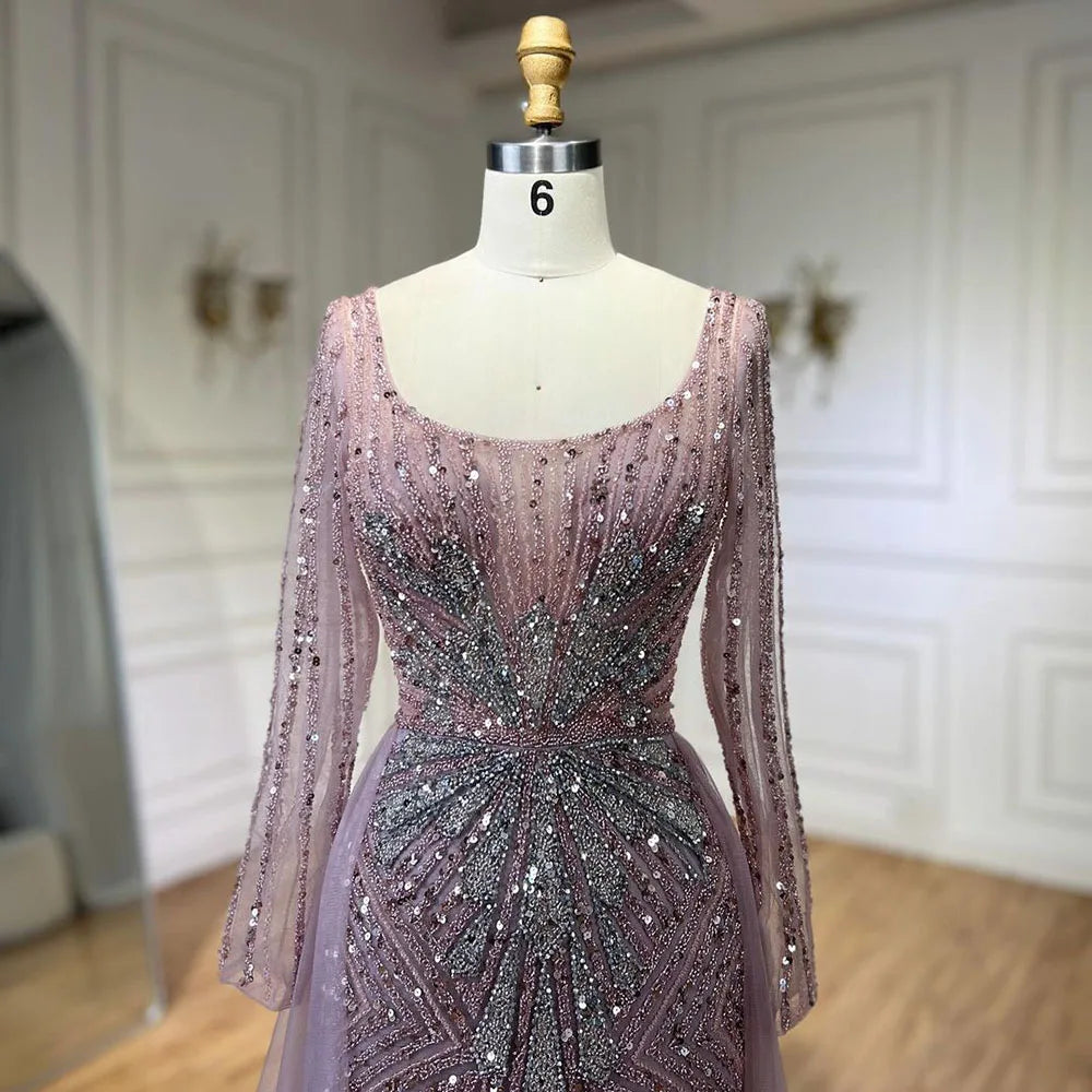 Elegante vestido de noche rosa con sobrefalda abierta, de lujo, con cuentas y corte sirena, ideal para bodas y fiestas 2025 LA72431