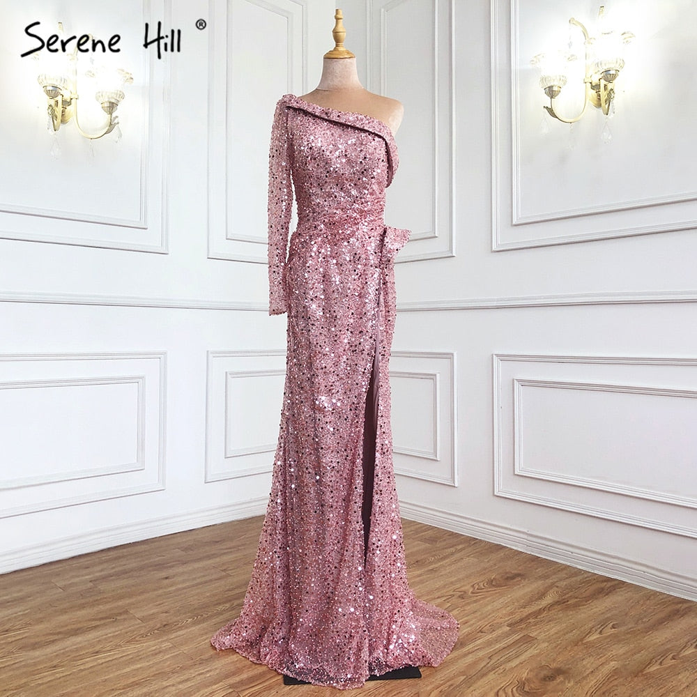 Vestidos de noche con abertura alta y corte sirena rosa, de lujo, con cuentas, elegantes, para mujer, para fiesta, LA71244