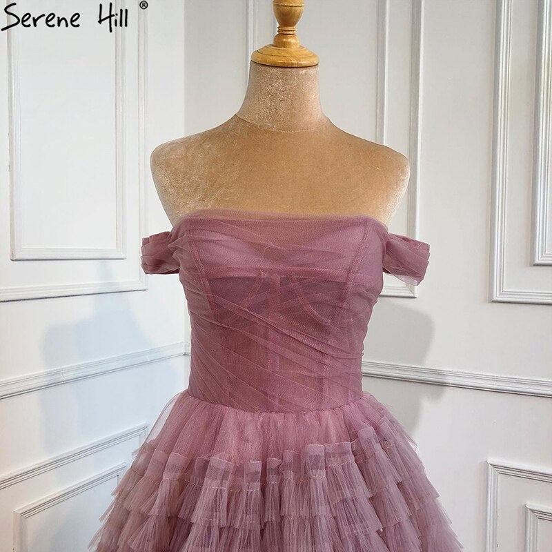 Vestidos de novia rosas con hombros descubiertos 2025, sexys, sencillos y escalonados, de alta calidad, HM67120, hechos a medida