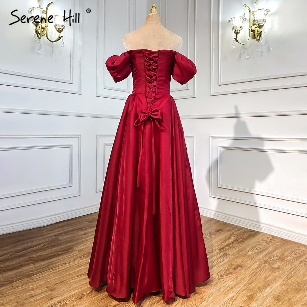 Vestidos de noche rojos de satén con corte en A, sencillos, con hombros descubiertos y sexys, para mujer, para fiestas, LA71286