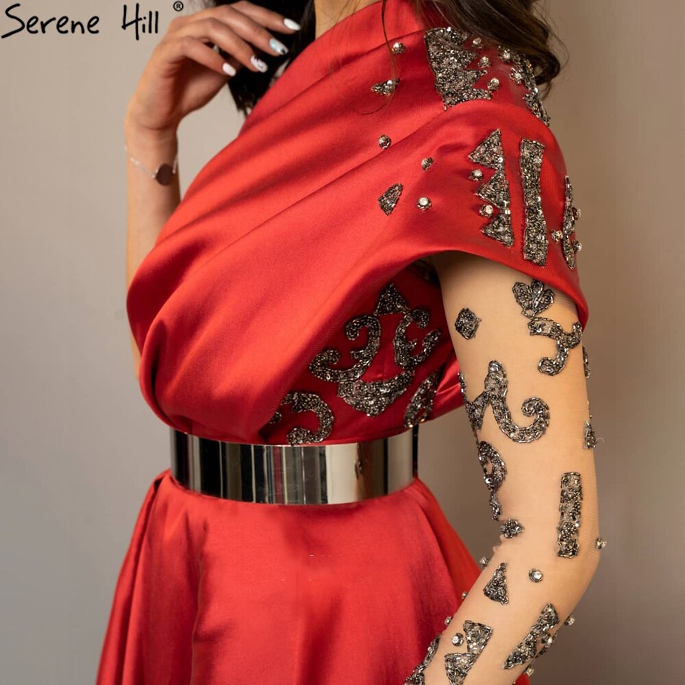 Vestido de noche sexy de satén rojo con cuentas, corte A, un hombro, para mujer, fiesta, LA71136