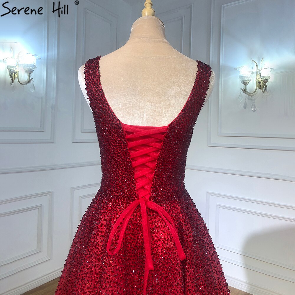 Vestidos de noche rojos con cristales, corte A, de lujo, sin mangas, sexys, para mujer, fiesta, LA70232A