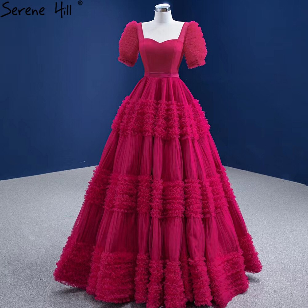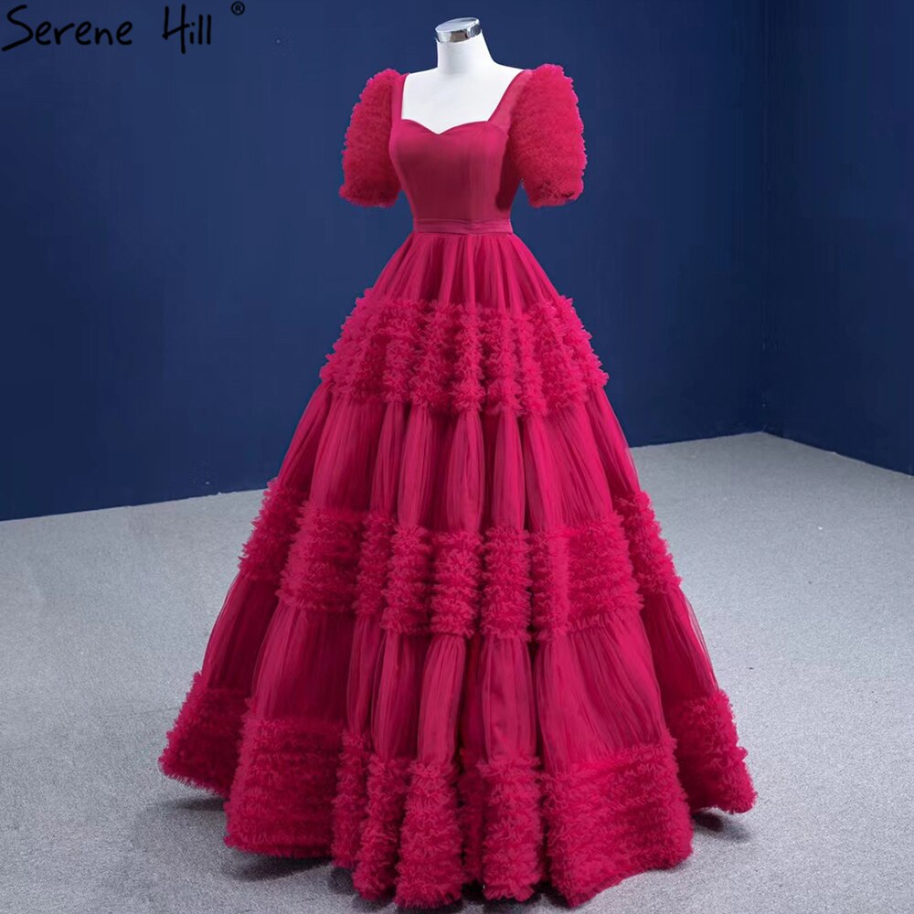 Vestidos de novia rojos con mangas abullonadas 2025, con volantes, sexys, con cordones, HM67361, hechos a medida