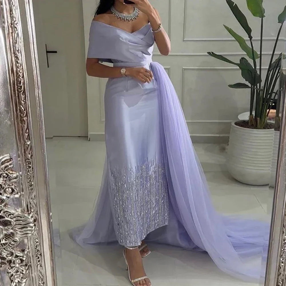 Vestido de noche de satén verde salvia con un solo hombro, corte sirena y cuentas, largo hasta la rodilla para mujer - Boda 2025 LA72194