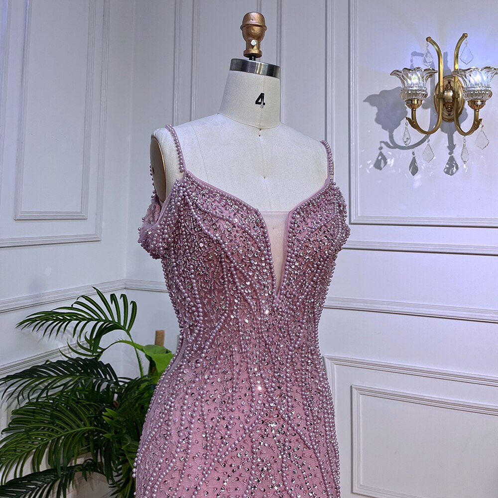 Vestidos de fiesta sexys rosas largos y brillantes con cuentas y hombros descubiertos para mujer, para cumpleaños, bodas, LA72020