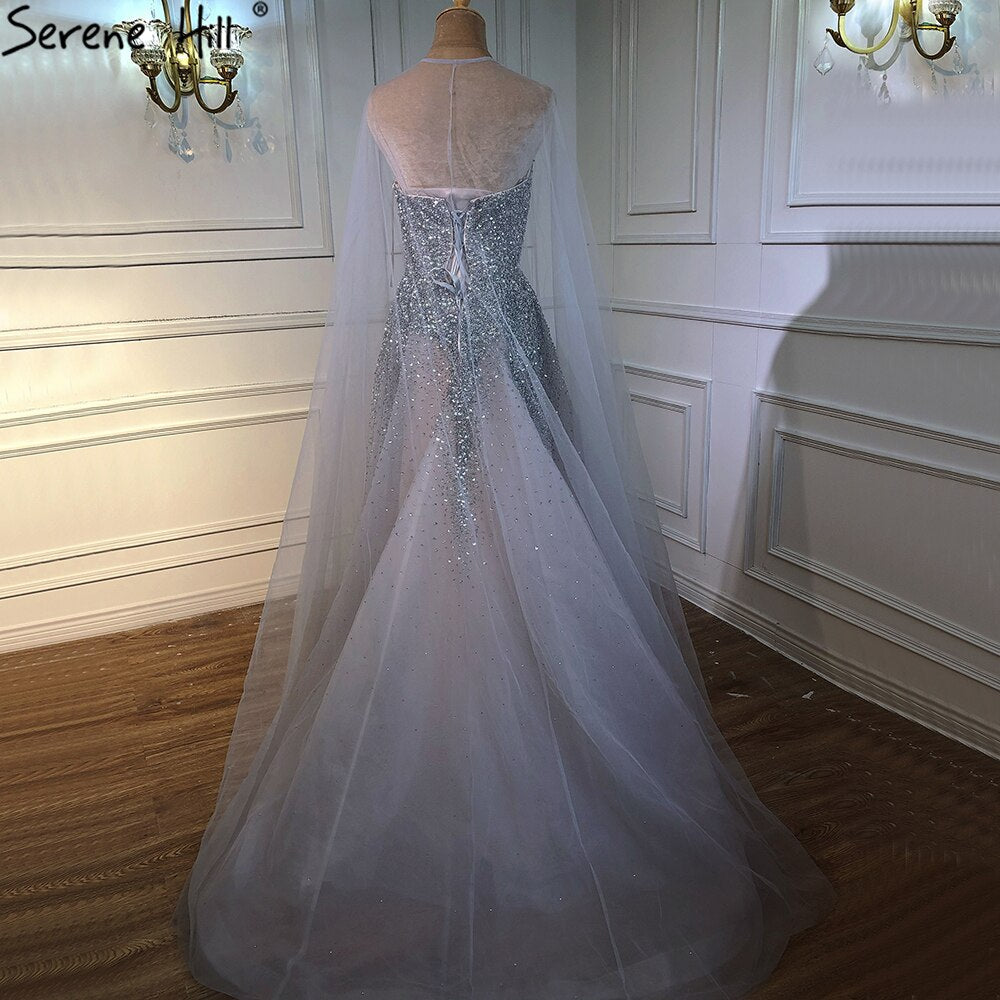 Vestidos de noche plateados de lujo, corte A, con capa y cuentas, sexys, para mujer, fiesta, LA70644