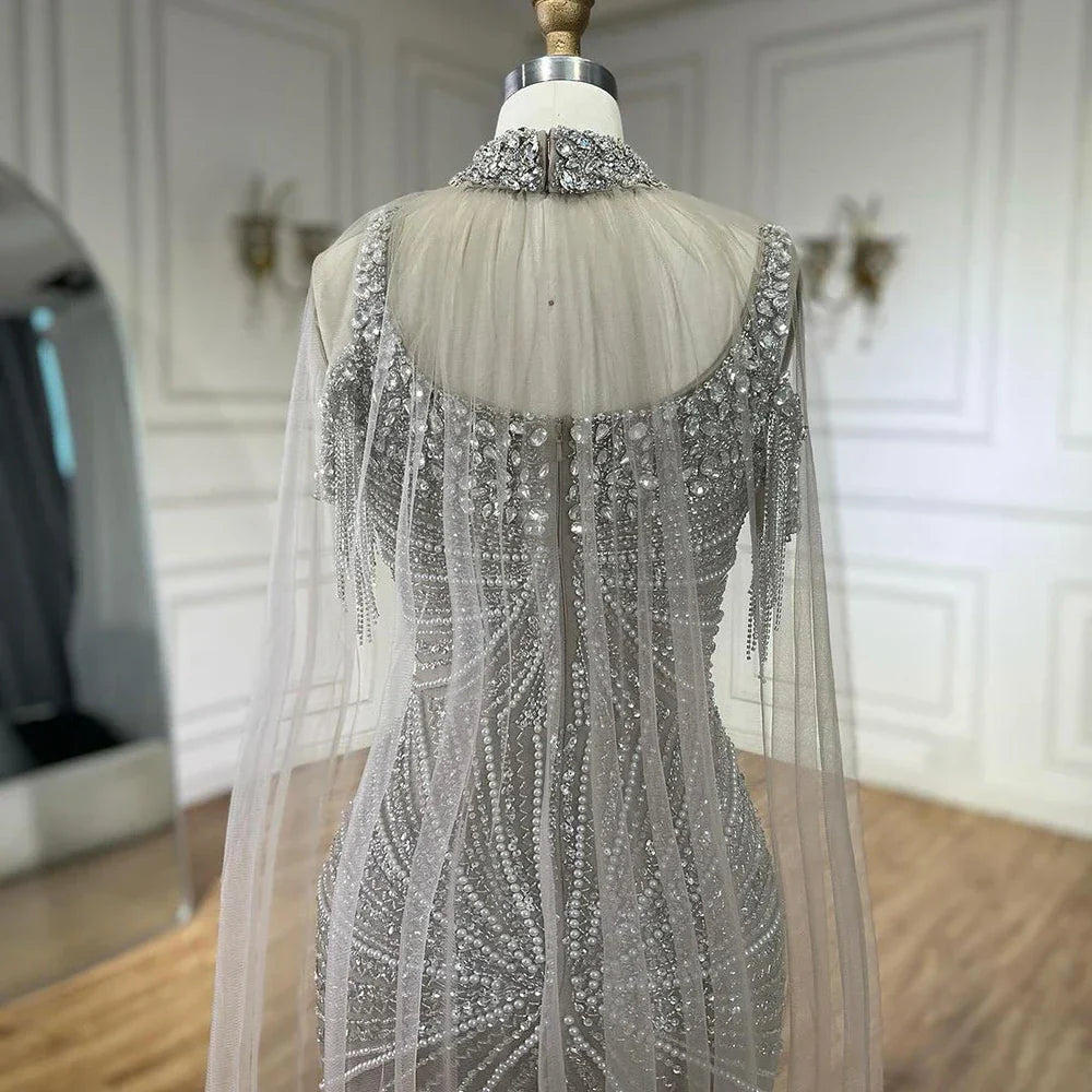 Vestido de noche de lujo con tirantes finos, estilo sirena, color plata, color piel y cuentas, para mujer, fiesta 2025, LA72587