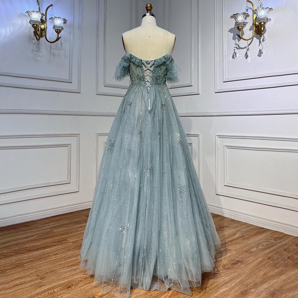 Vestido largo de novia de lujo turquesa árabe 20253, corte A, hecho a mano, con cuentas, formal, para fiesta de graduación, LA72064