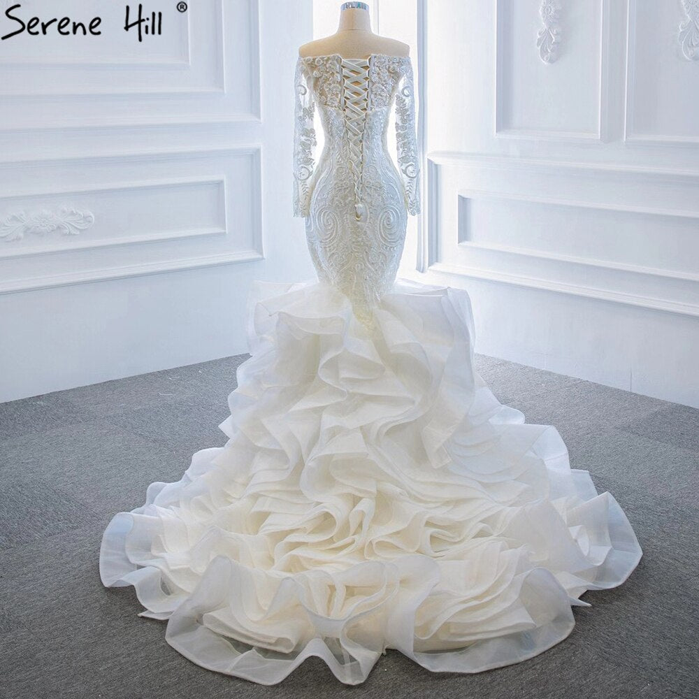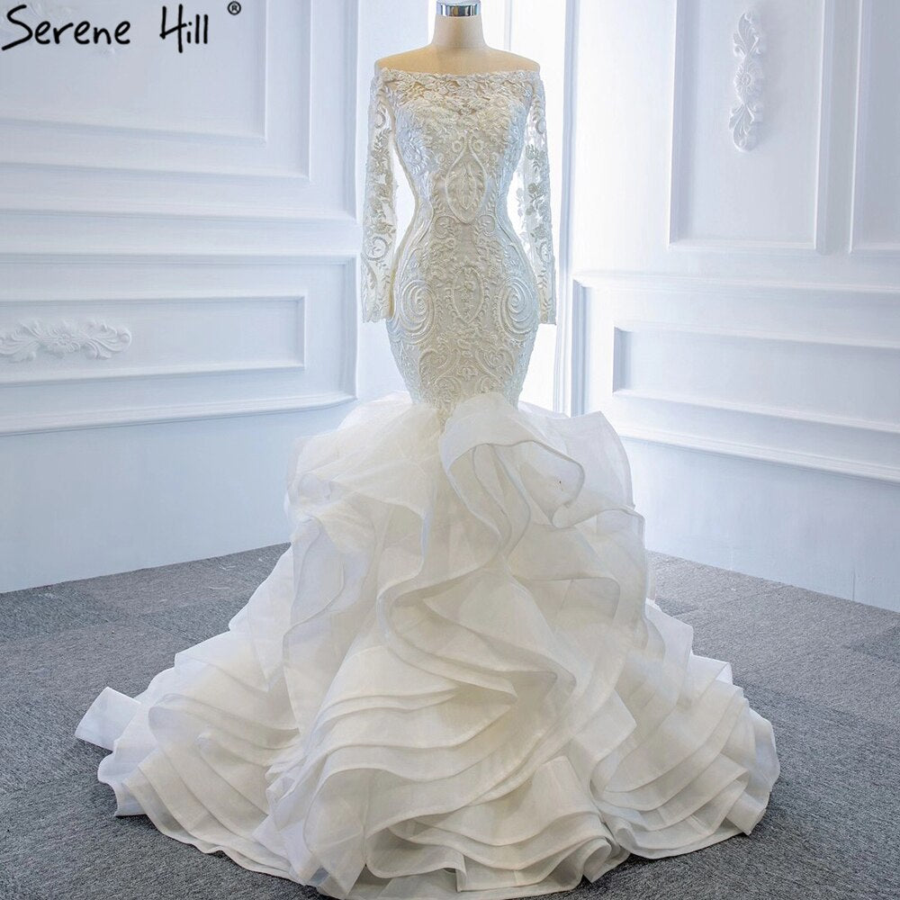 Vestidos de novia vintage de sirena blancos 2025 con hombros descubiertos y encaje, elegantes y sexys, HM66734, hechos a medida