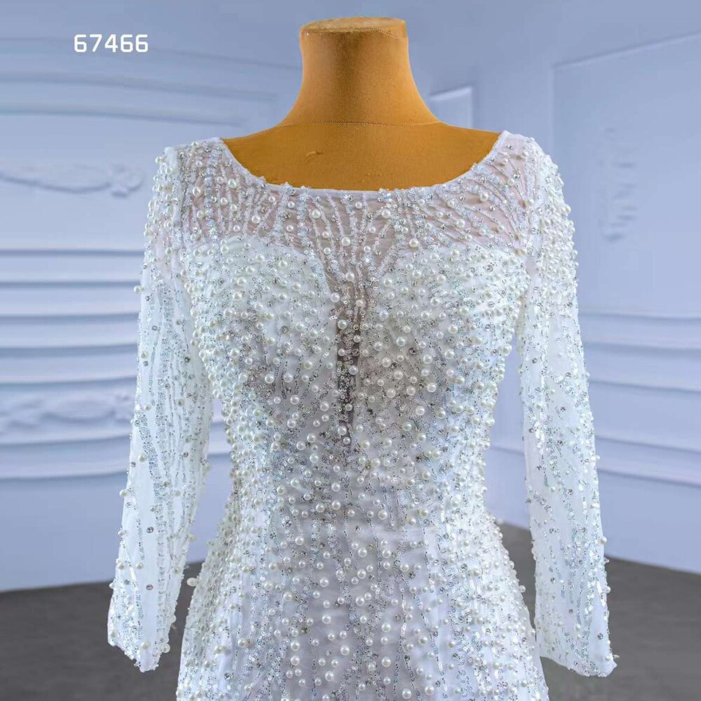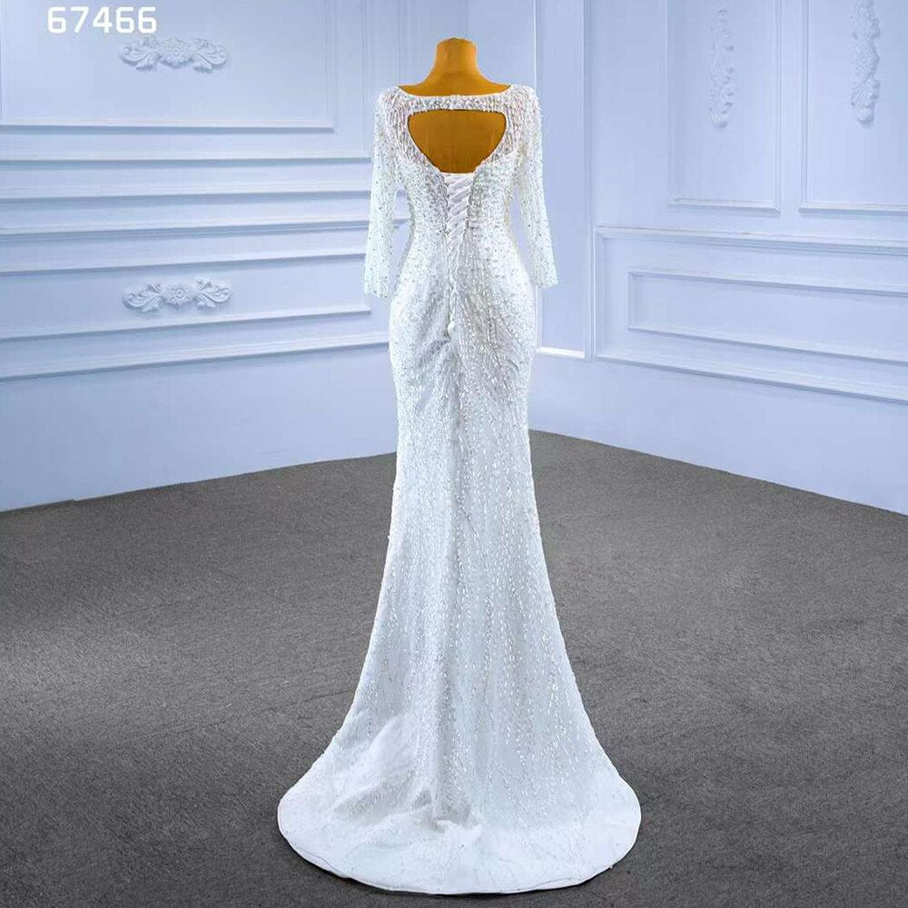 Vestido de novia blanco con cola desmontable, sirena, perlas, encaje, 2025, alta gama, hecho a medida, HM67466