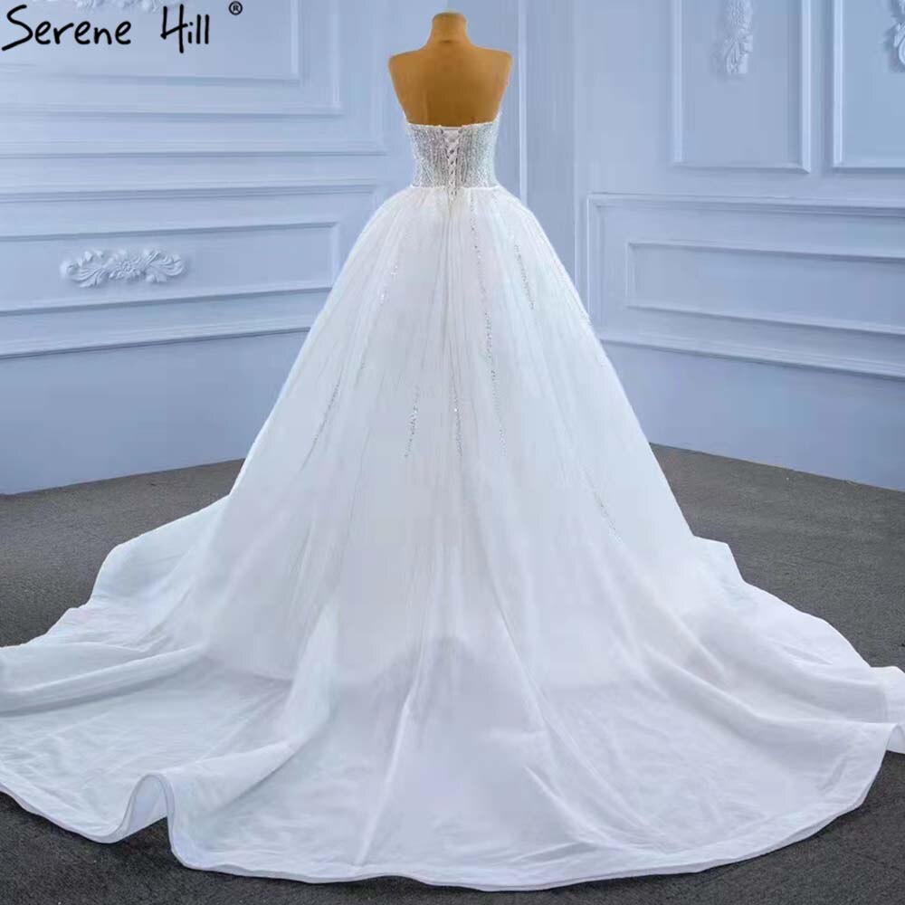 Vestidos de novia blancos de sirena con cola desmontable 2025, vestidos de novia de lujo con cuentas HM67404, hechos a medida