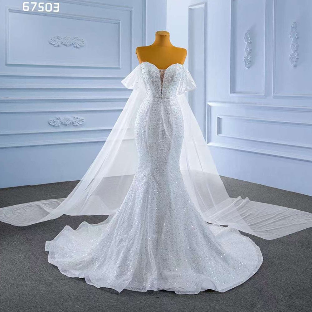 Vestido de novia blanco elegante de sirena sin tirantes, con cuentas de perlas y cordones, de alta gama, hecho a medida, HM67503, 2025