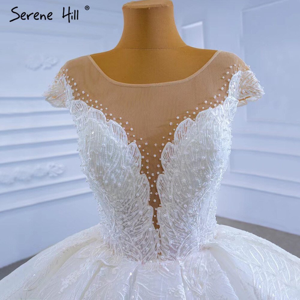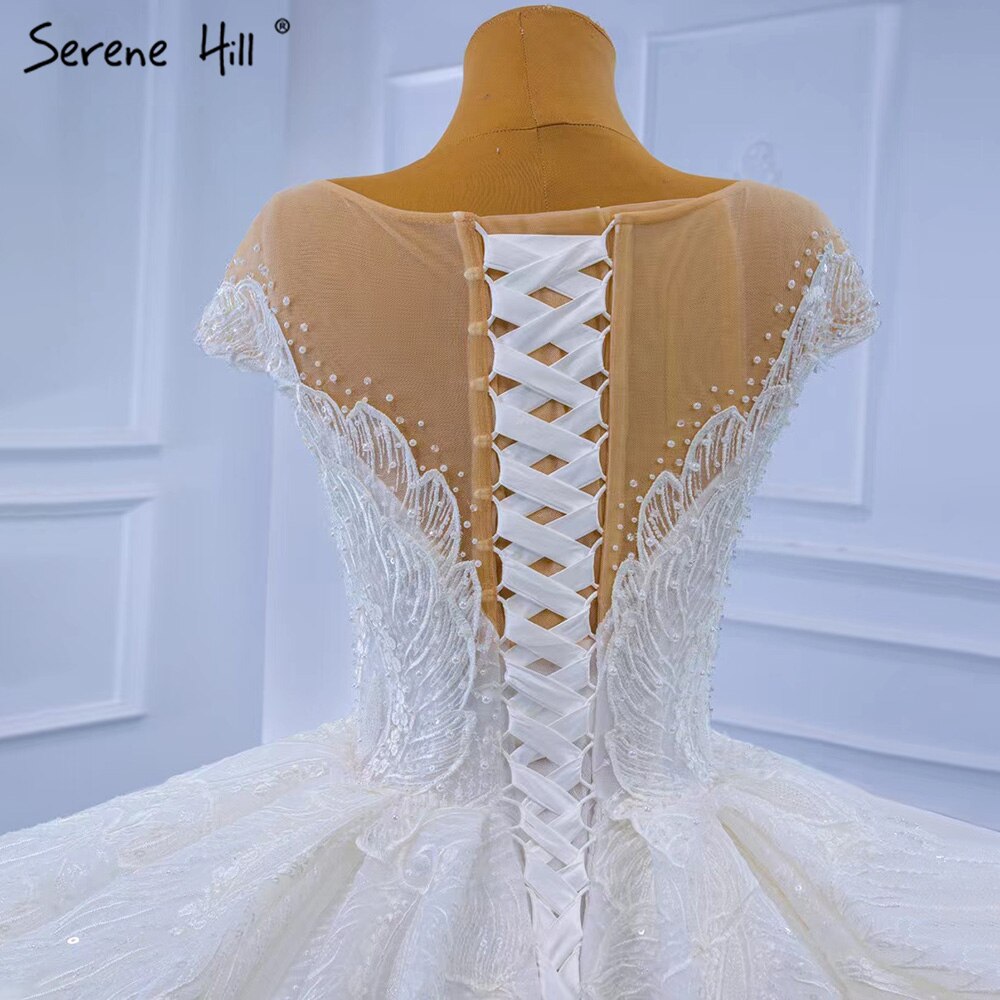 Vestidos de novia blancos de lujo de alta gama 2025 con cuentas y perlas, vestidos de novia con cordones HM67306, hechos a medida