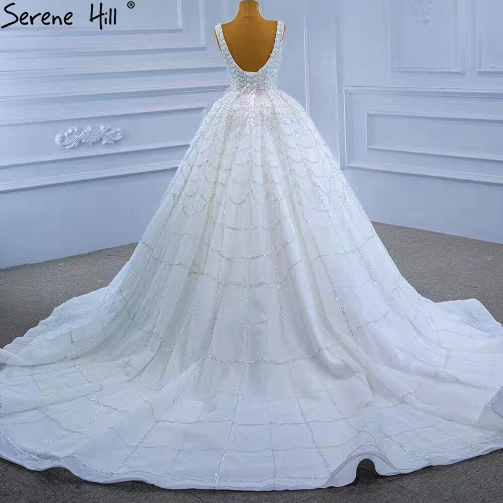 Vestidos de novia blancos de lujo con cordones 2025, vestidos de novia sexys de alta gama con cuentas HM67377, hechos a medida