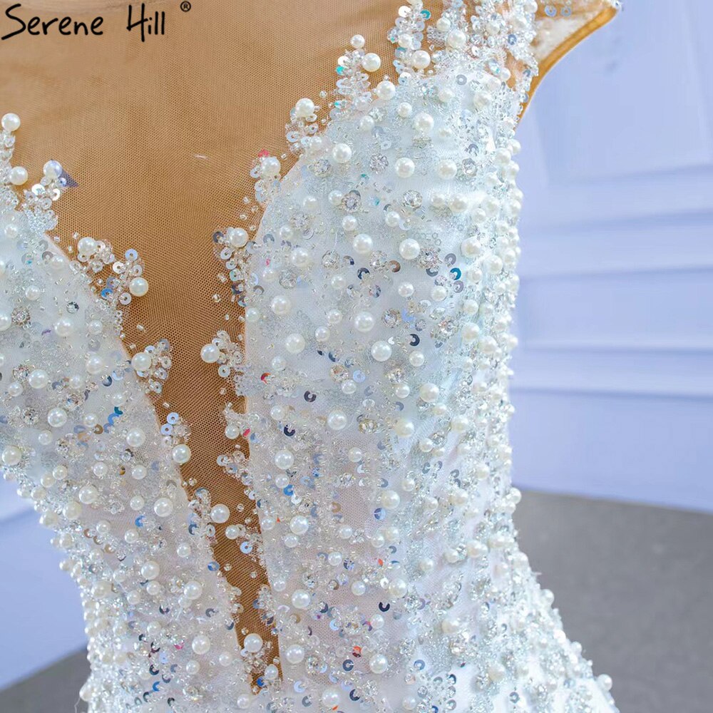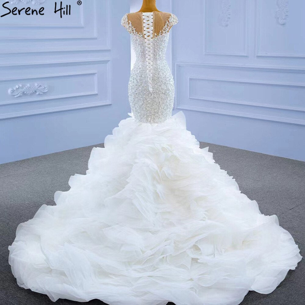 Vestido de novia blanco de lujo estilo sirena 2025, elegante vestido de novia con volantes y cuentas HM67291
