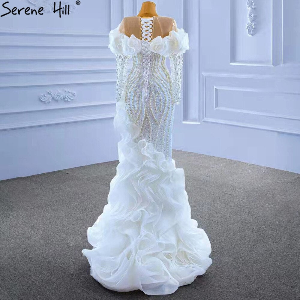 Vestido de novia blanco de lujo con volantes, corte sirena, cuentas y perlas, HM67418