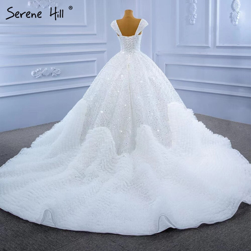 Vestidos de novia blancos de lujo y sexys 2025 con volantes y cuentas, vestidos de novia de alta gama HM67321, hechos a medida