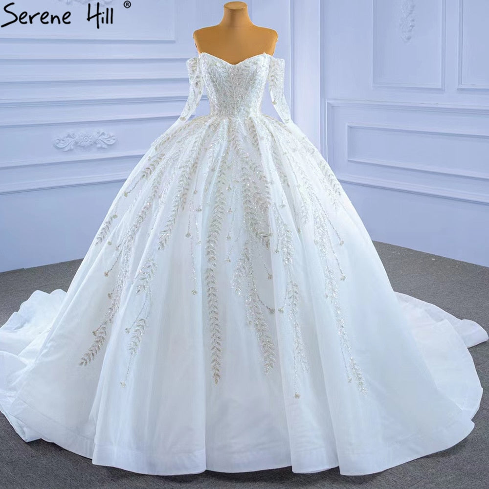 Vestidos de novia blancos de lujo y sexys 2025 con cuentas brillantes y cordones HM67284, hechos a medida