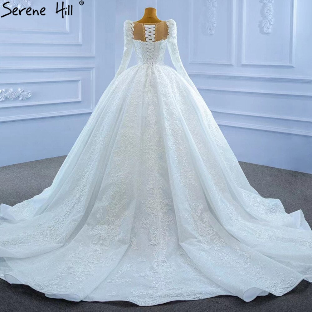 Vestidos de novia musulmanes blancos con encaje y cuentas, 2025, de lujo, de alta gama, HM67258, hechos a medida