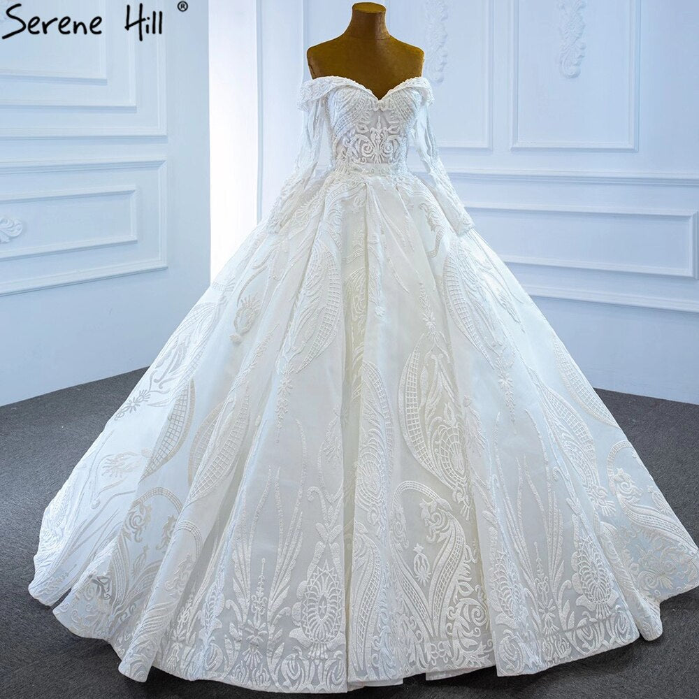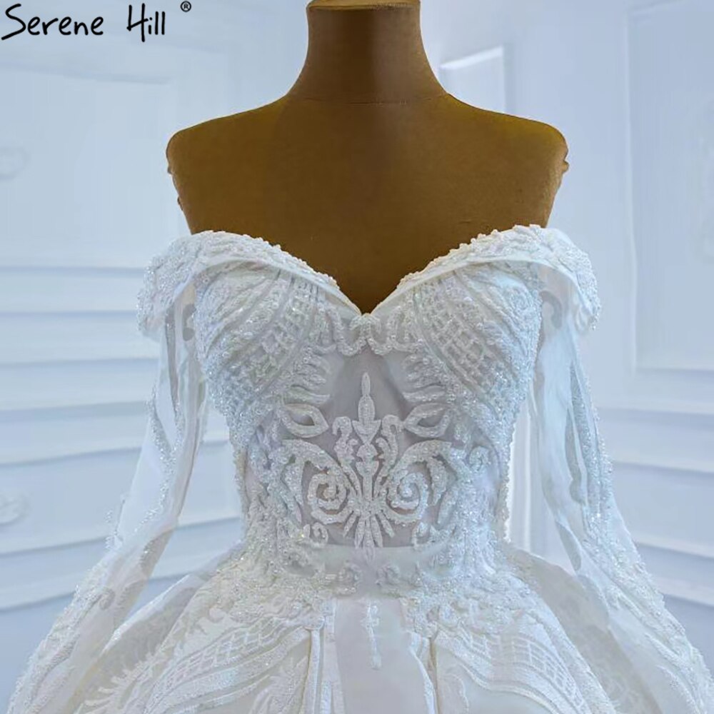 Vestido de novia blanco con hombros descubiertos, sexy, de lujo, con cuentas, perlas y cordones, HM67206, hecho a medida, 2025
