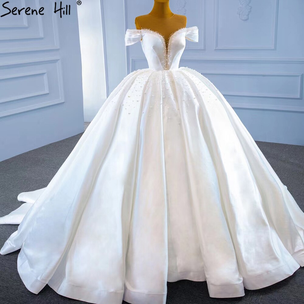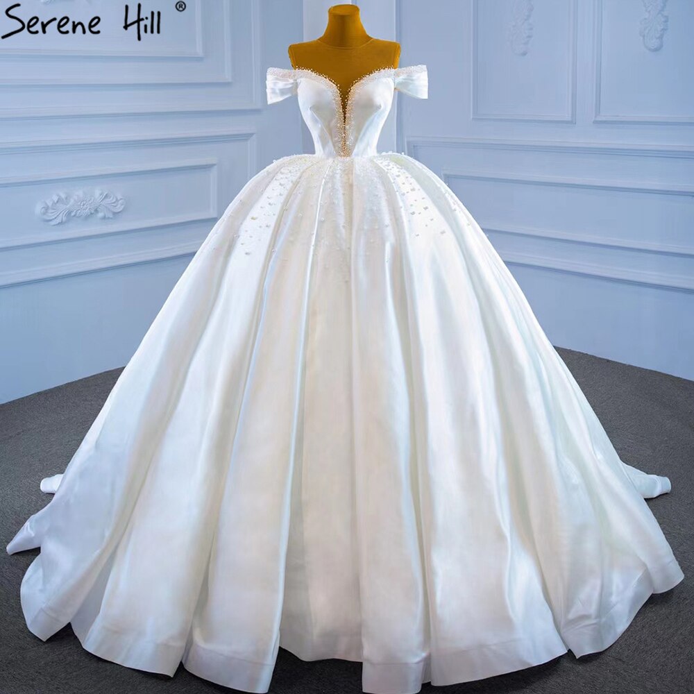 Vestido de novia de satén blanco con cuentas y perlas, sin mangas, de alta gama, con cordones, HM67240