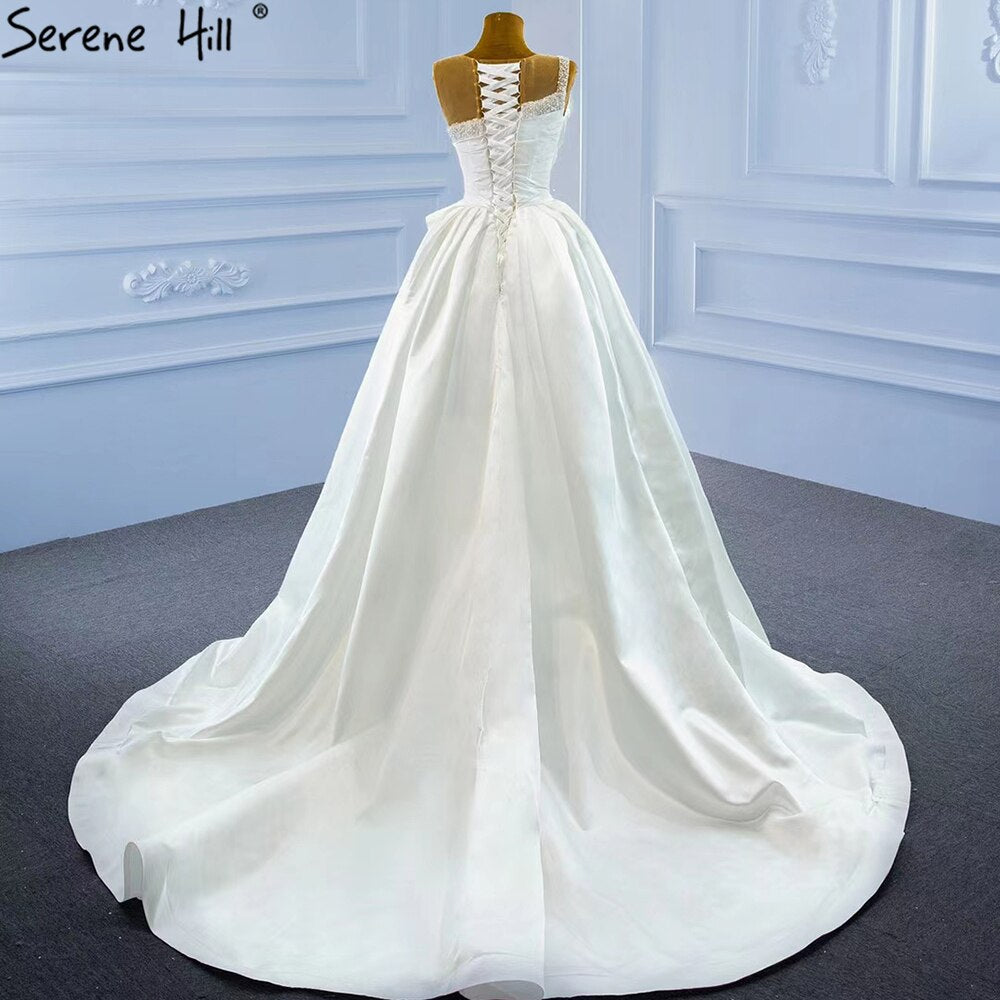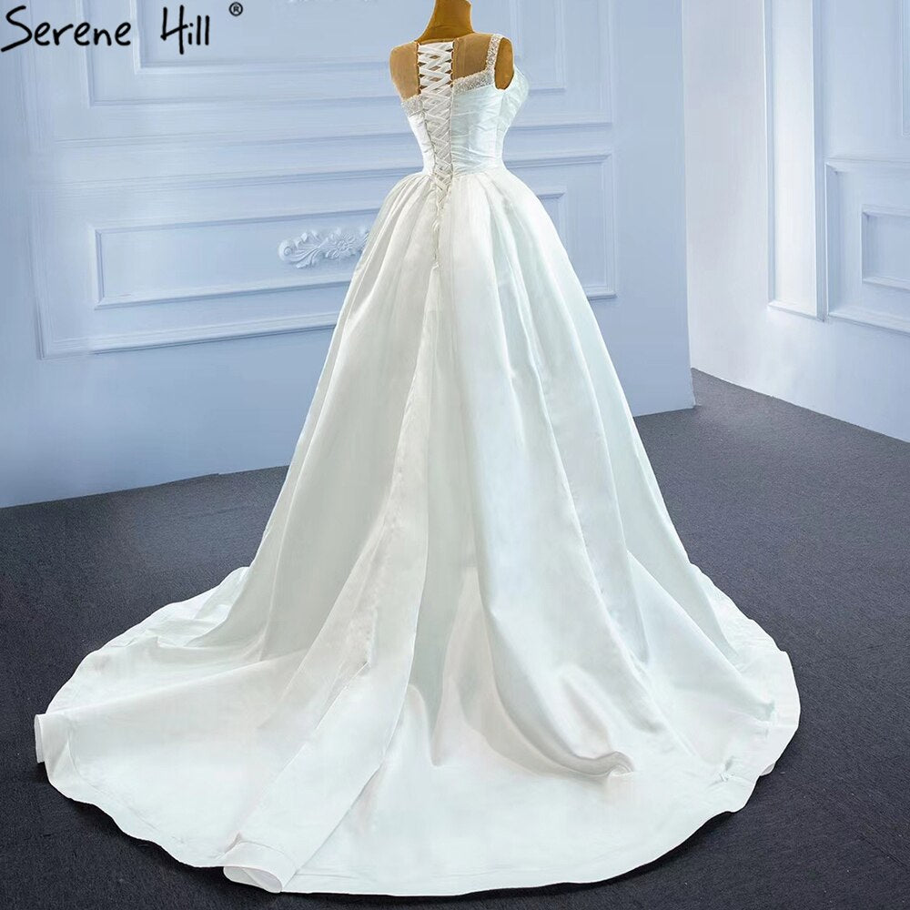 Vestido de novia blanco de satén con abertura alta, con cuentas y perlas, sexy, con cola, HM67252, hecho a medida.