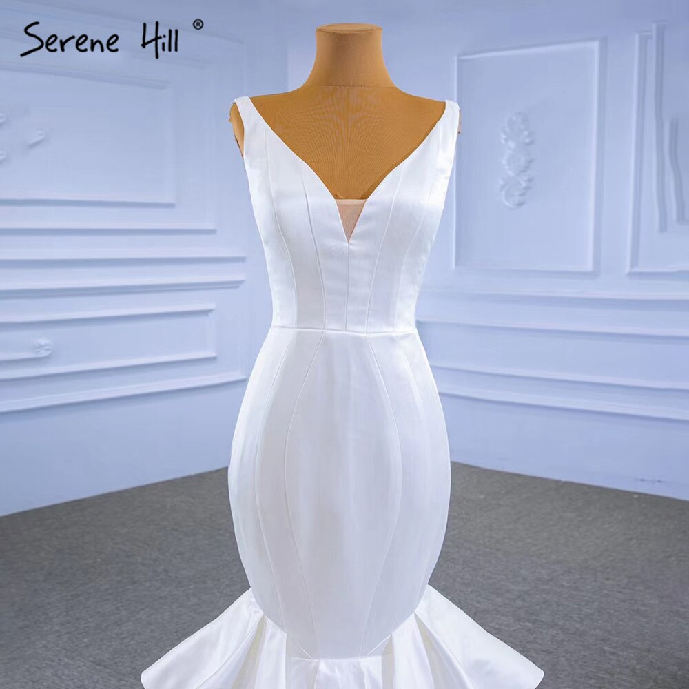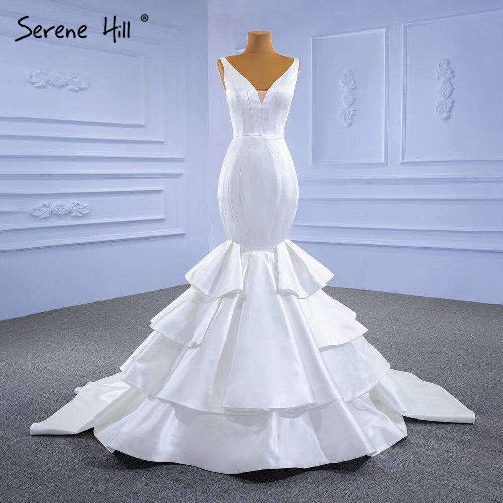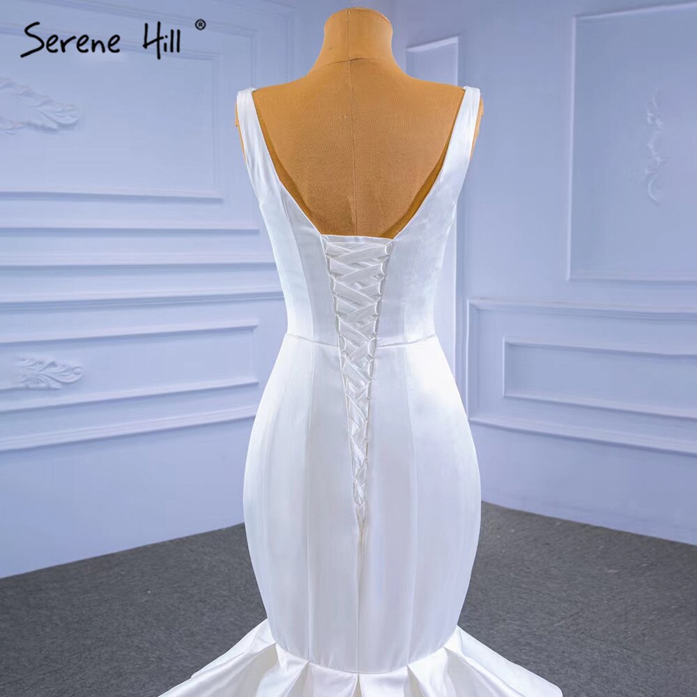 Vestidos de novia de sirena de satén blanco 2025, elegantes, sencillos y sexys, con capas, HM67312, hechos a medida